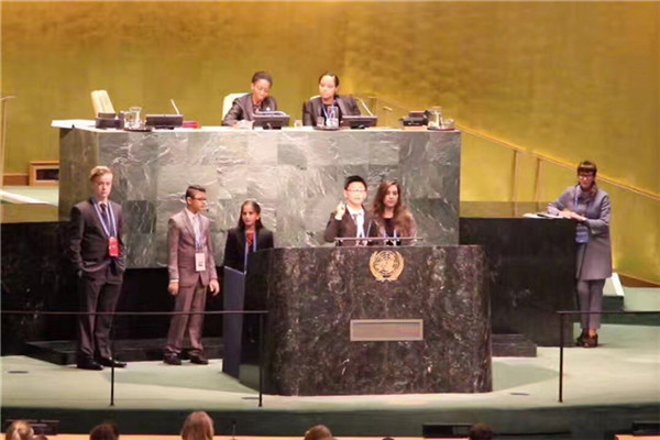 美國東部時(shí)間3月11日,為期四天的2017MMUN國際青少年峰會(huì)在紐約聯(lián)合國大廈舉行了投票儀式和閉幕式。代表們身著正裝,手持文件,莊嚴(yán)而肅穆地走進(jìn)他們夢(mèng)想中的聯(lián)合國總部金色大廳。世外小學(xué)章建生同學(xué),憑借在分組討論中的出色表現(xiàn),脫穎而出,被分會(huì)主席委派上臺(tái)發(fā)表演說。這是自MMUN開展至今,中國小學(xué)生首次獲此殊榮,這是一個(gè)歷史性的時(shí)刻。