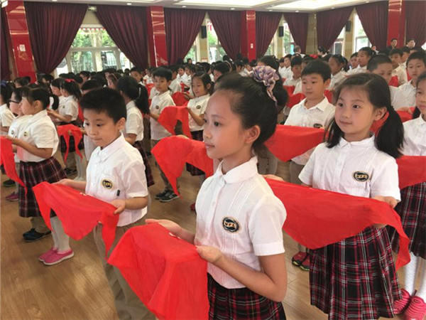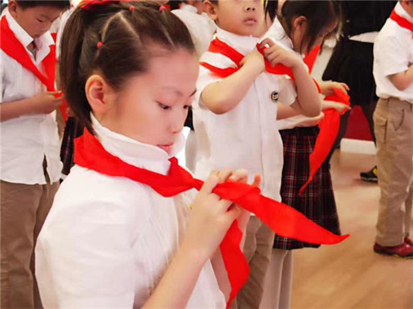 回到學校后,各中隊舉行中隊成立儀式。少先隊員們交流入隊感想,講述先烈事跡。少先隊員代表為中隊輔導員佩戴了鮮艷的紅領巾,中隊輔導員則為他們舉行了莊嚴的"換標志儀式"。當中隊輔導員為小干部佩戴上鮮紅的標志時,新隊員們深感由兒童團干部成長為少先隊干部后要承擔"一條杠杠,一份責任",表示將努力為大家服務。