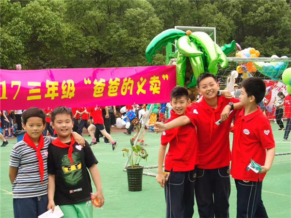 視線移到戶外,操場上已然熱鬧非凡,幾十輛車一字排開。今天無論是轎車、汽車還是房車,都化身為買東西的小販車,原來這里是三年級"爸爸的愛心"義賣活動現場。爸爸們打開后備箱,里面陳列著琳瑯滿目的商品,有學霸必須的文具、有吃貨喜愛的零食飲料、有小天才愛好的創意游戲……孩子們手拿導覽圖奔波于各個攤位間挑選滿意的商品不亦樂乎,其間還有志愿者幫忙叫賣和維持秩序,每個人都收獲了商品,得到了鍛煉。最后的善款將匯總捐助給"寶貝之家"和"新生兒缺陷"兩個慈善項目。