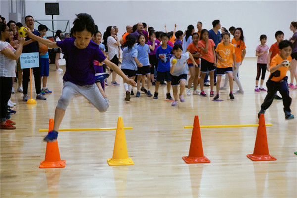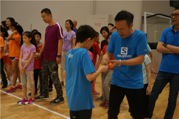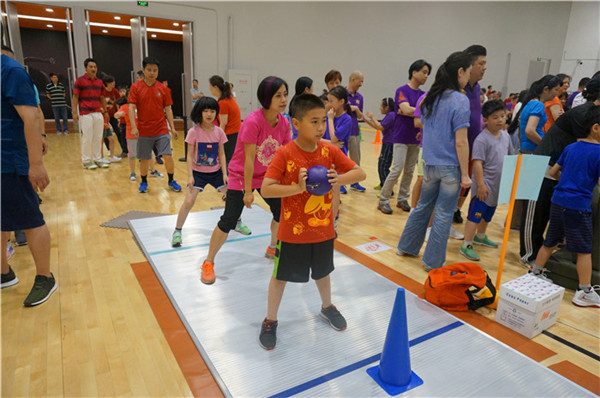 "親子運動會"有十五個親子游戲,游戲中包含速度、柔韌、靈敏等各種身體素質,同時游戲中也體現了團隊協作、相互幫助等體育精神。在游戲過程中,有爸爸們和孩子一起合作完成的"同舟共濟"、有需要考研柔韌性的游戲"螞蟻搬家"、也有拼速度和跳躍能力的"跨欄比賽",還有講究技巧和協調的游戲"雞蛋超人"等等。平日里工作忙碌的家長們,和孩子一起快樂地做起游戲來,仿佛也一下子回到了童年時光,綻放出幸福的笑容,揮灑出快樂的汗水。