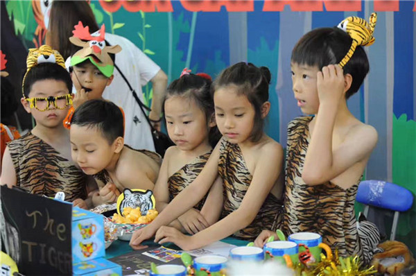 6月19日,世外小學(xué)雙語部一年級(jí)的孩子們,用了僅僅1個(gè)月的時(shí)間,4個(gè)一年級(jí)班級(jí),10位老師,十多位愛心媽媽,連續(xù)多個(gè)日日夜夜,24種野生動(dòng)物,以中英文匯報(bào)研究成果,將語文、數(shù)學(xué)、英語、藝術(shù)、信息技術(shù)以及體育等各個(gè)學(xué)科融匯其中,進(jìn)行了一場(chǎng)名為"OUR SAFARI PARK"的跨學(xué)科主題探究展示活動(dòng)。
