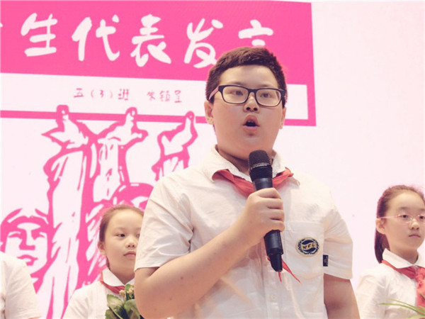 據悉,世外的孩子們非常熱愛公益活動,在暑假里參加了豐富多彩的助學助人的志愿者活動,開學典禮上幾位同學談談他們的活動體會。劉牧遙、王攸同小朋友親自來到貴州山區為同齡的小伙伴送書、送學習用品;周子煜小朋友則自己組建了一支助學假日小隊前往山區開展活動。