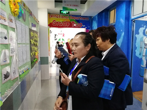他們走進了世外小學陳列室、校史室、圖書館、書法教室等一些專用教室,他們紛紛舉起手中的手機進行拍照,他們希望將世外小學寬敞明亮的教室、顏色豐富多彩的墻面布置以及充滿創(chuàng)意的各種環(huán)境設計通過照片帶回去學習。也希望能為山區(qū)鄉(xiāng)村的校舍添一抹亮色。