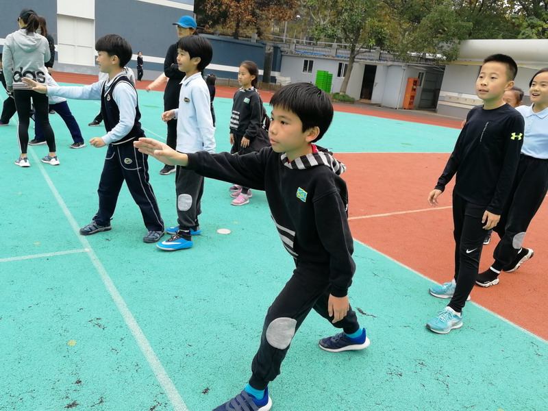 音樂聲傳來,原來四年級的孩子正在練習自然操。快來看他們整齊的動作,感受他們昂揚的精神。