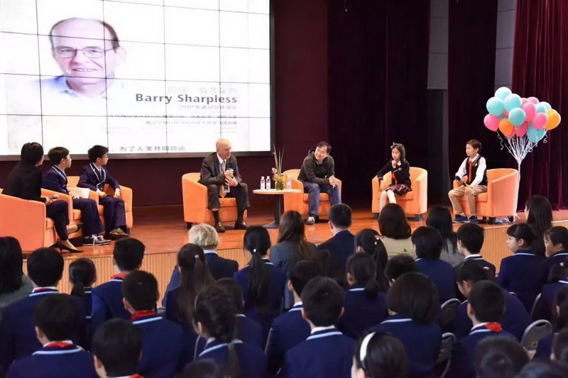 11月1日,他們其中的一位來到世外小學和孩子們面對面交流。他就是巴瑞·夏普萊斯教授,2001年諾貝爾化學獎的得主。巴瑞·夏普萊斯教授從斯坦福大學畢業以后,一直在麻神理工學院和斯坦福大學任教。現任職于美國斯克里普斯研究所。他也是美國科學院院士、美國藝術科學院院士、沃爾夫獎獲得者,他因在"手性催化反應研究"方面的卓越貢獻獲得2001年諾貝爾化學獎。不僅如此,他還獲得了2018年普利斯特獎章。