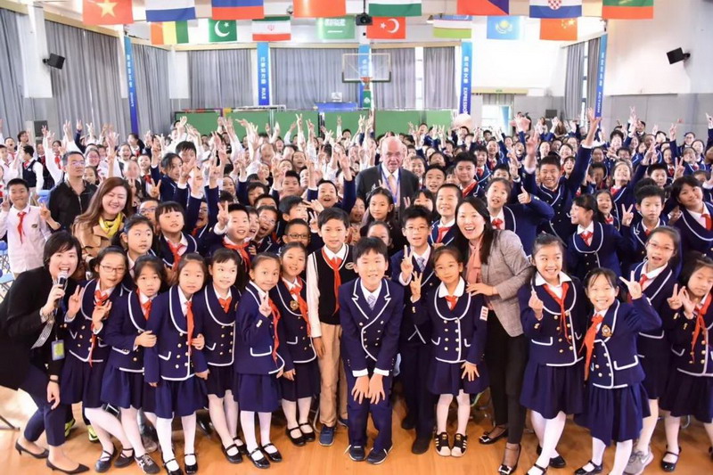 孩子們也積極提問互動:"所學的已知和在一起會得到未知嗎?""在堅持探索的過程中對所放棄的東西有遺憾嗎?""什么樣的人更可能成為科學家?"學生一開口,老爺爺嚇了一跳,說英語講得這么好,完全可以無障礙交流啊!老爺爺也真誠地以自身經歷和孩子們進行了交流。就這樣你來我往他,討論得非常熱烈。
