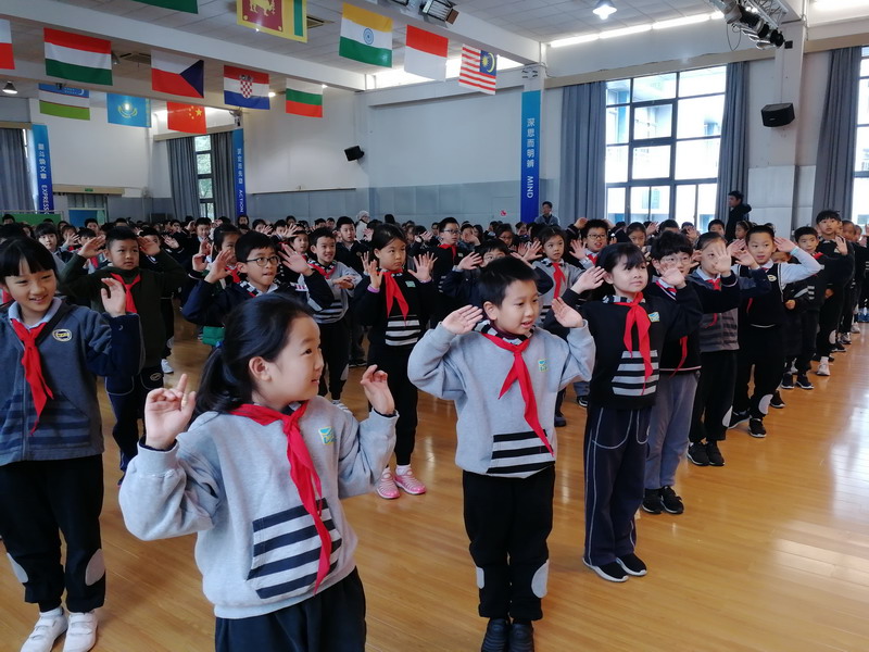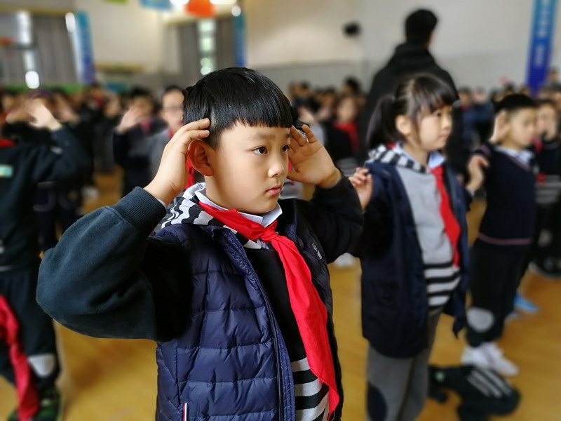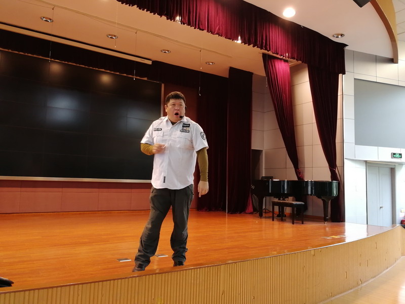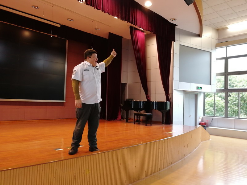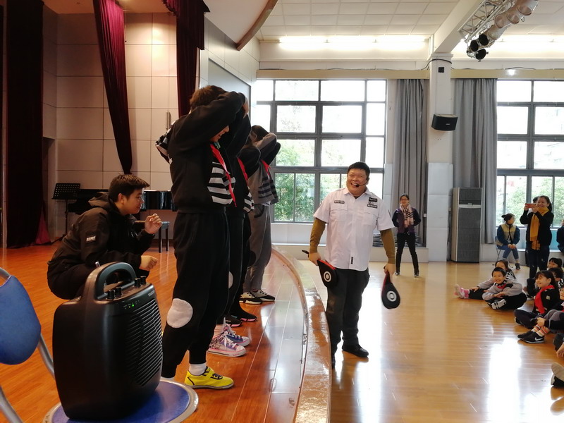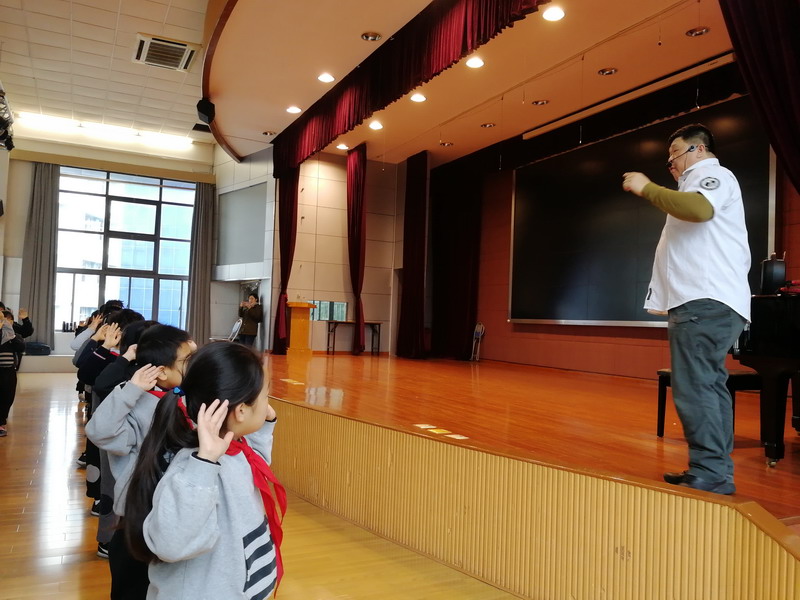 楊教官首先進行了簡短的自我介紹,隨后他先教學生們了解"SOS"國際求救信號,并和在場的同學們一起互動。在教學中,楊教官非常注重和孩子們的現場互動。他聲音洪亮,言語幽默,現場氛圍非常好。