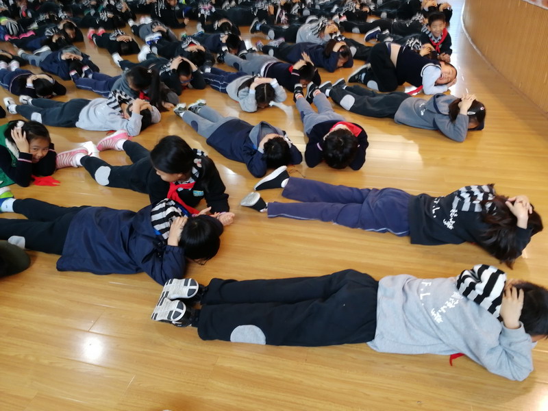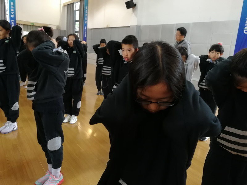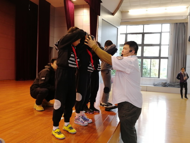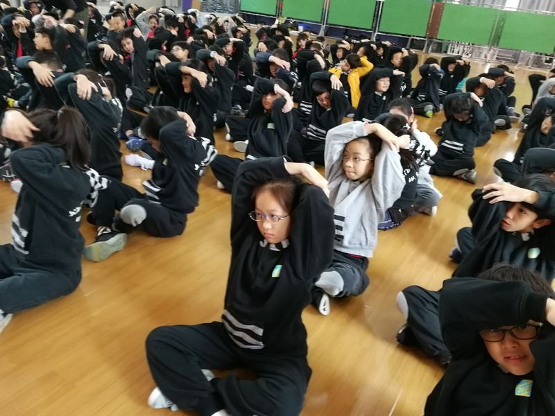 教官教完后還邀請了幾位學生演示抱頭姿勢,他當場檢驗抗打的有效性。同學們都紛紛舉手,踴躍地要求接受檢驗。楊教官則用道具模擬演示了抗打實驗,在一片歡聲和掌聲中,同學們受益匪淺。