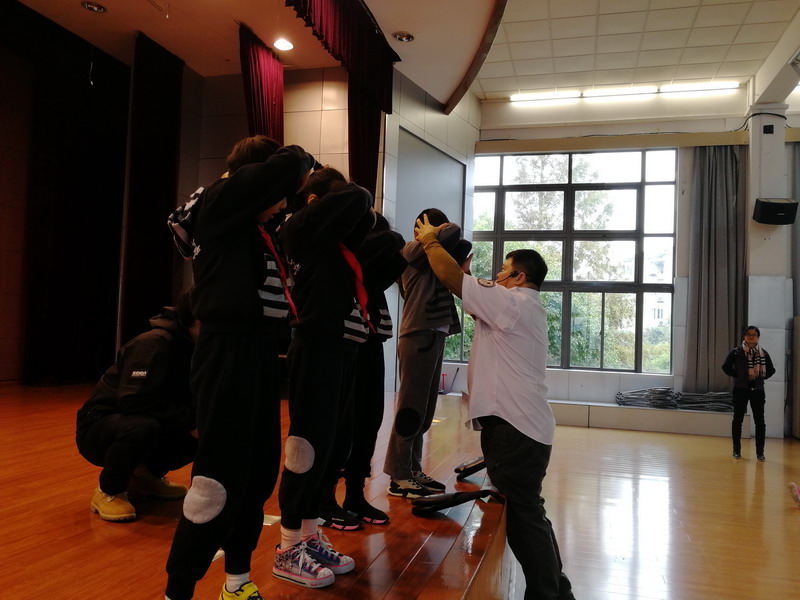 當遭遇恐怖襲擊時,學生們不僅應懂得如何保護自己,還要能聽懂一些英文單詞,并需要迅速作出反應。接著楊教官發出各種指令,例如"Freeze"、"Stop"等,同學們則立刻根據指令做出臥倒、抱頭等反應動作。教官還用教具拍打模擬槍擊聲,令同學們仿佛身臨其境,現場感極佳。