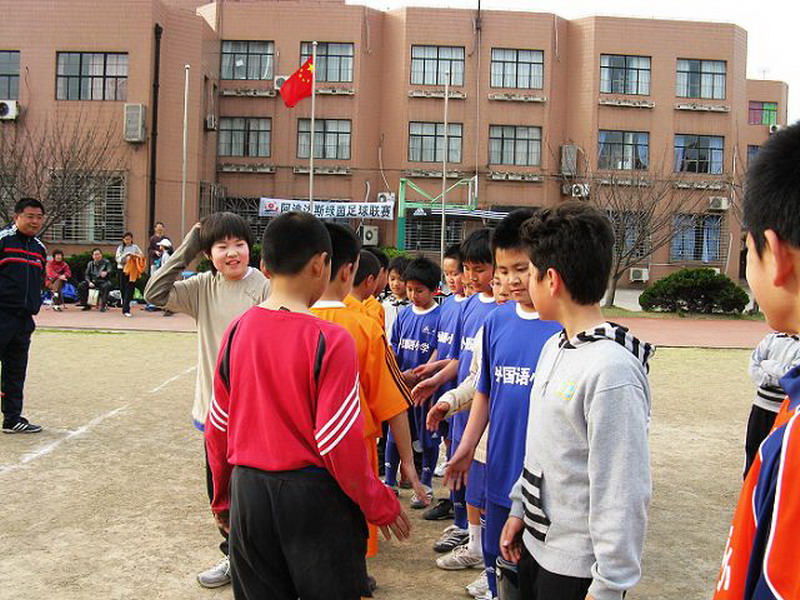 五年級(jí)的孩子都在這個(gè)校隊(duì)踢滿三年光景,有些哥哥在校隊(duì)的,成為了家里弟弟的榜樣,弟弟到了三年級(jí)也被選中進(jìn)入校隊(duì),繼承衣缽,一踢又是三年。校隊(duì)就這樣被傳承下來了, 每一位入選校隊(duì)的孩子都很自豪,當(dāng)他們?cè)谟?xùn)練日里穿著球隊(duì)隊(duì)服穿梭于教學(xué)樓道之間,總是讓其他學(xué)生非常羨慕。