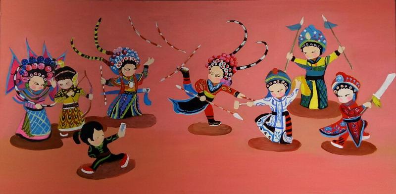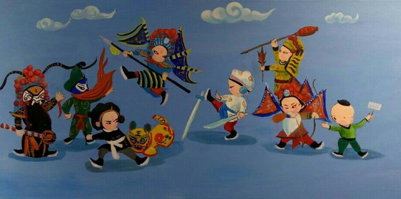 今天,讓我們一起穿越時空,回到這美好的記憶中。當前我國科技發展迅速,我也想把這些展現在作品中,所以就有了悟空和天宮七號、驚動了龍宮的蛟龍號……握一支畫筆,繪心中斑斕;執一支毛筆,書墨香點點。