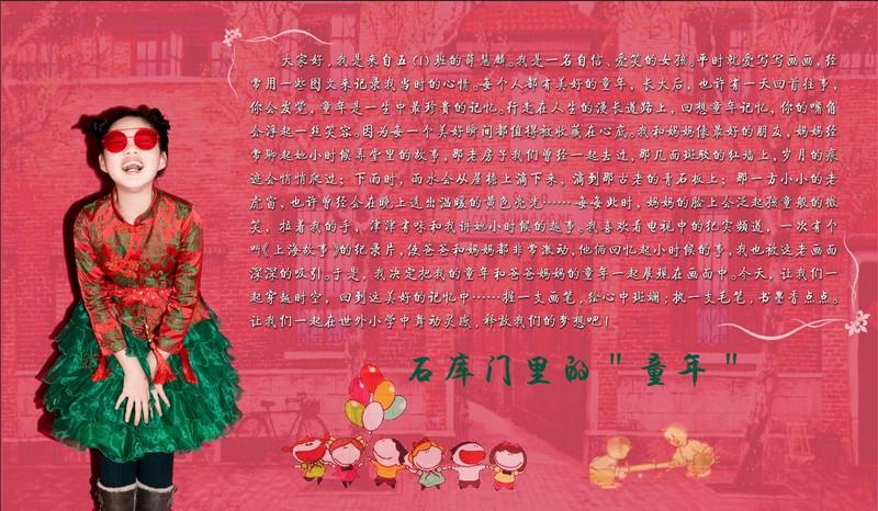 下雨時,雨水會從屋檐上滴下來,滴到那古老的青石板上;那一方小小的老虎窗,也許曾經會在晚上透出溫暖的黃色亮光……每每此時,媽媽的臉上會泛起孩童般的微笑,拉著我的手,津津有味和我講她小時候的趣事。我喜歡看電視中的紀實頻道,一次有個叫《上海故事》的紀錄片,使爸爸和媽媽都非常激動,他倆回憶起小時候的事,我也被這老畫面深深的吸引。于是,我決定把我的童年和爸爸媽媽的童年一起展現在畫面中。