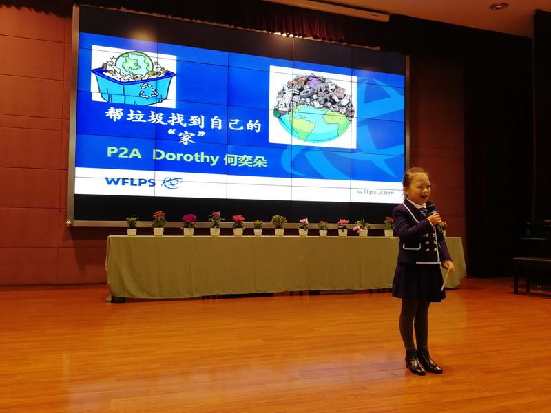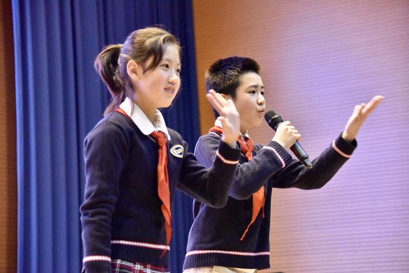 學習需要自律,生活中也需要自律。舉個最簡單的例子,我們每天都會產生垃圾,你知道垃圾應該怎么扔嗎?Canyou distinguish between the four major types of garbage?五年級的周浩寧同學創作的相聲:垃圾分類我能行,用幽默風趣的語言向學生傳達垃圾分類的知識和重要性。并現場對垃圾分類以及從今年7月1日起,將正式實施《上海市生活垃圾管理條例》等進行了現場提問,臺下的同學都積極回答。這使我們想到學校的Dream目標中也有"知行合一"的指標,教導我們要用行動去實踐。
