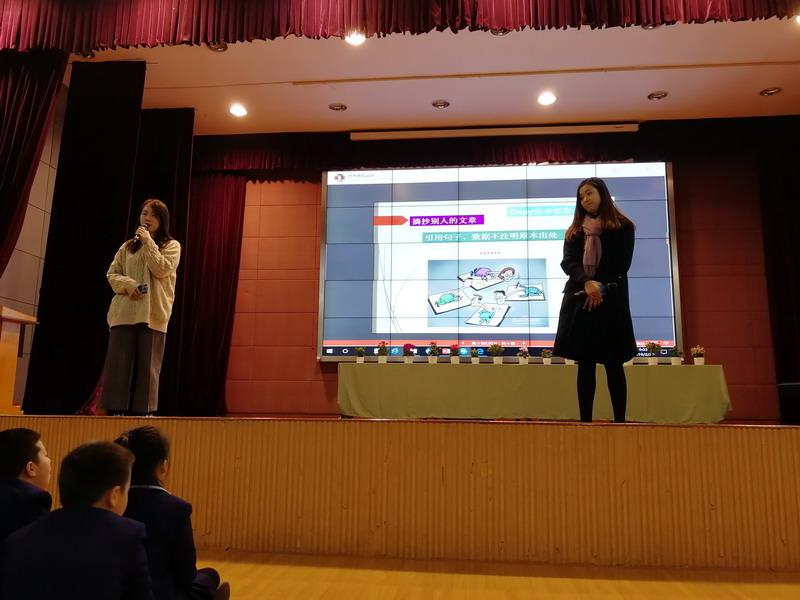 除了學會知識,還要有保護知識的意識。融合部教師表演團隊自編自演,通過風趣幽默的小品向學生們詮釋了知識誠信、知識產權保護等相關內容。
