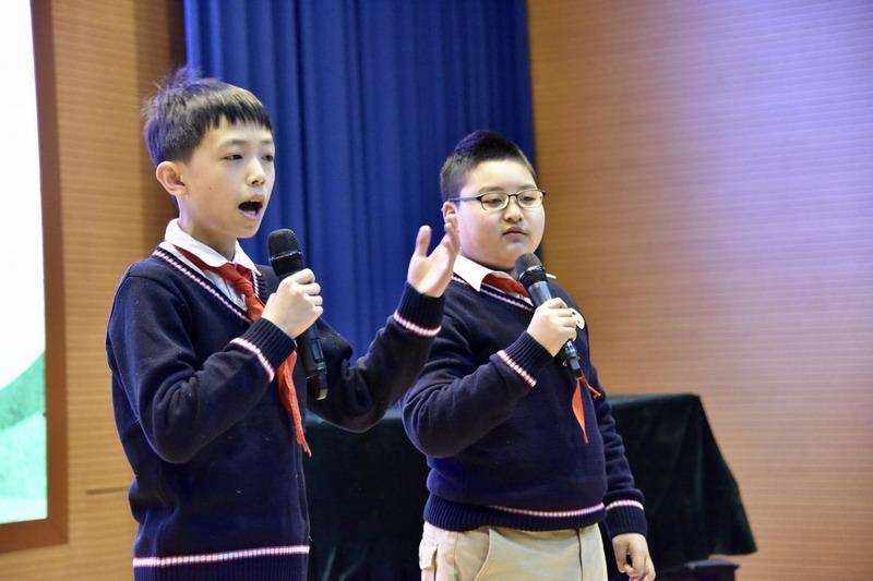 學習了這么多"垃圾分類"的小知識,同學們也有很多想法要分享。五年級的陳博文和方誠諾結合所見所聞,給大家帶來了一段幽默的相聲表演。