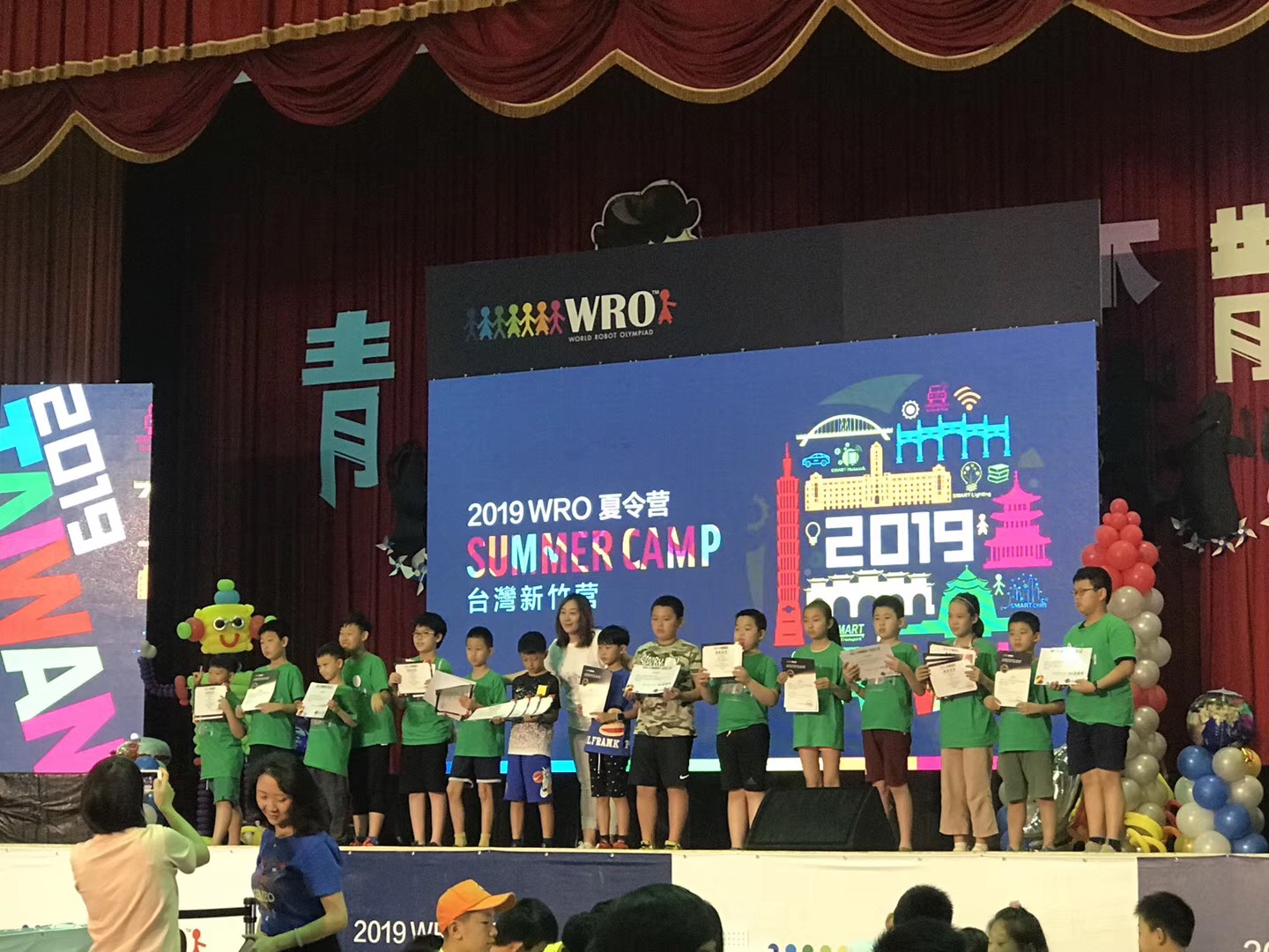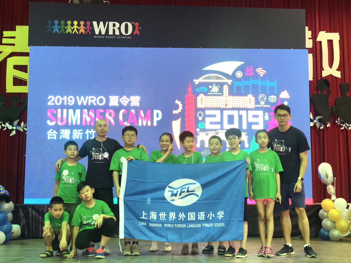 2019年 7月上海市世界外國語小學機器人校隊由境內部,雙語部,融合部共9個孩子在曹晶老師與黃衛華老師的帶領下參加在臺灣舉辦的WRO世界機器人奧林匹克賽。他們分別是王思成、陳奕銘、史煜心、郭語桐、丁圣道、盧致成,仇彬睿、黨梓軒、紀嘉杰。此次臺灣賽中和世外孩子同組別的參賽隊伍里大多都是來自各地的樂高中心與專業機構,強手如云,孩子們也很有幸可以跟機器人高手們相互學習。