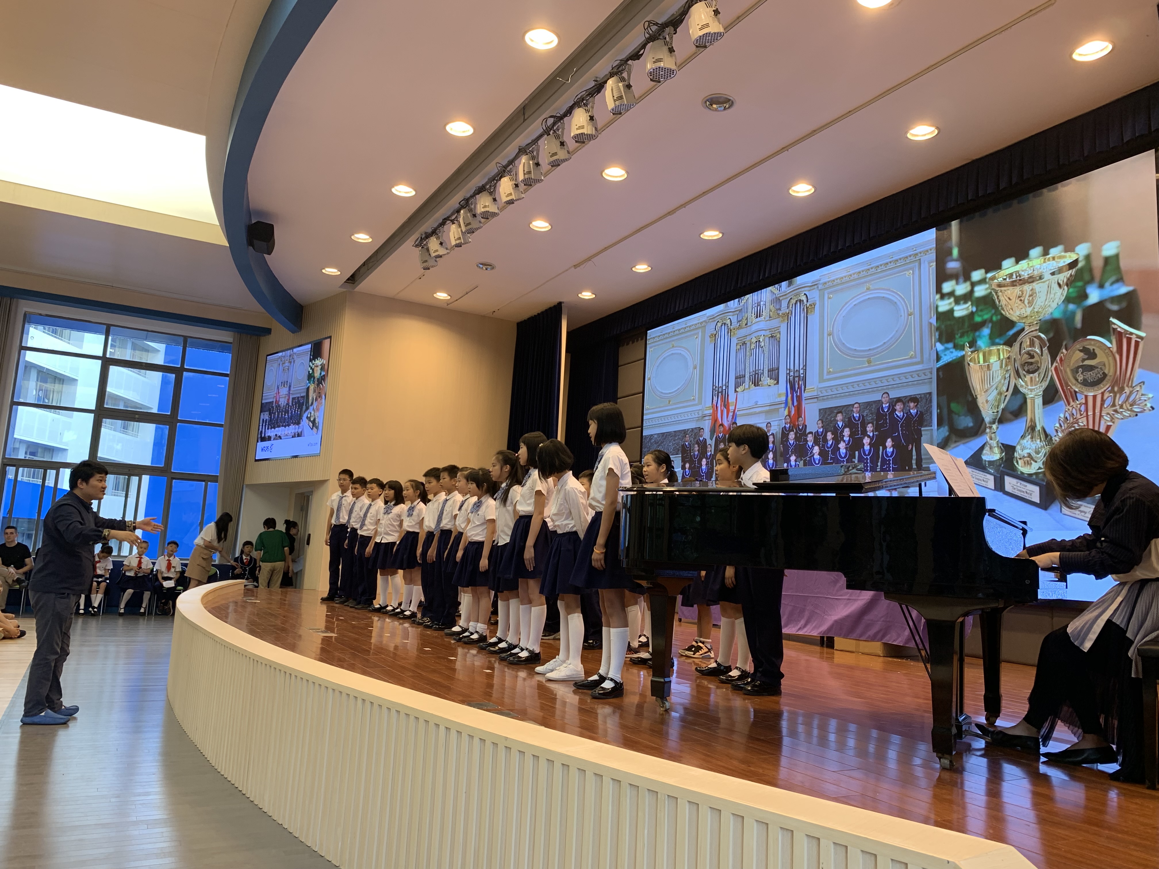 暑期中,融合部合唱團的同學們在老師的帶領下,遠赴俄羅斯參加國際合唱比賽。他們犧牲了暑假里的大部分時間進行集訓,最終在世界的舞臺上獲得佳績。開學典禮上,合唱團的孩子們登臺齊唱,重現比賽歌曲《The Lord》和獲得最佳演繹獎的《莫斯科郊外的晚上》。