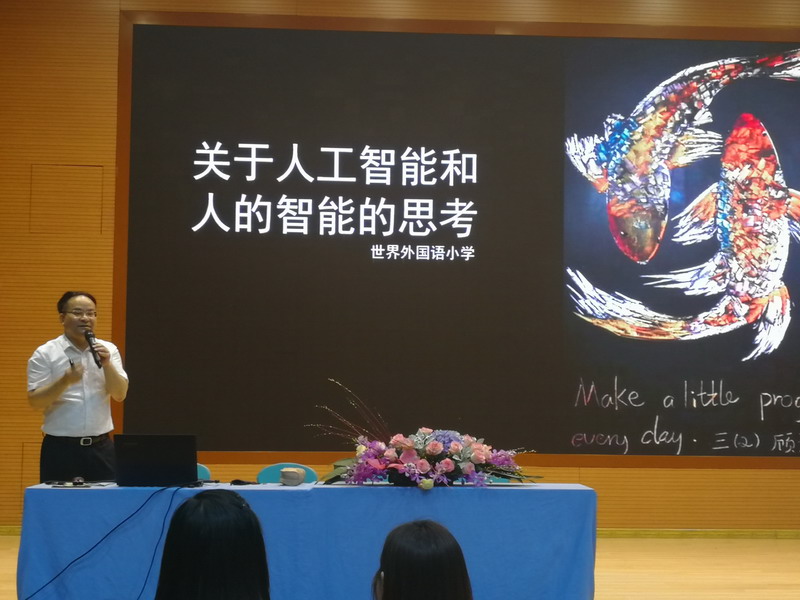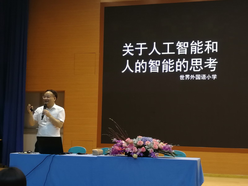 上海市教委副主任倪閔景先生走進世外小學,向全體教師做《人工智能和人的智能思考》的報告。