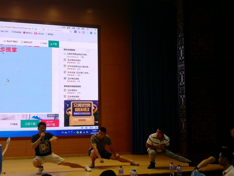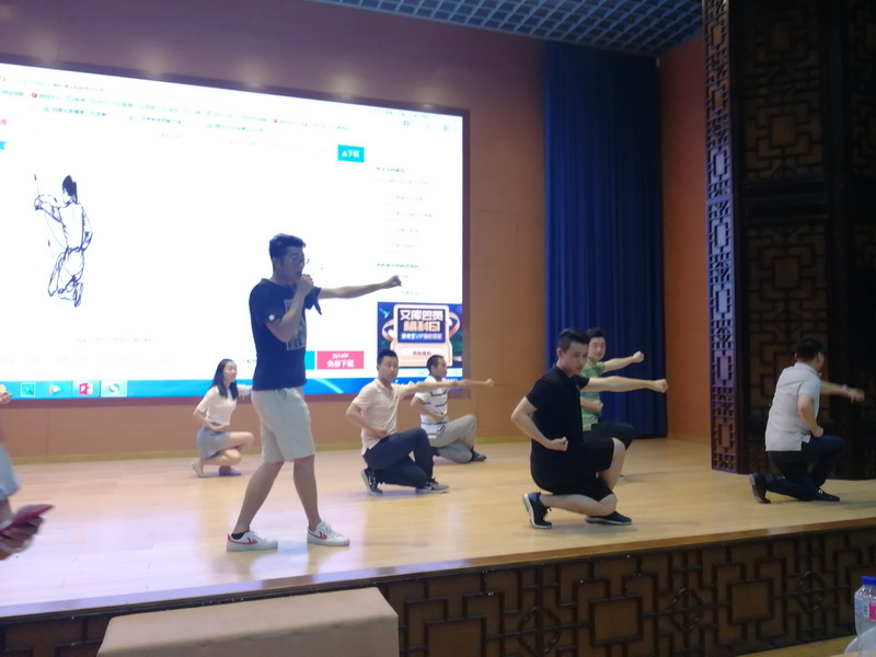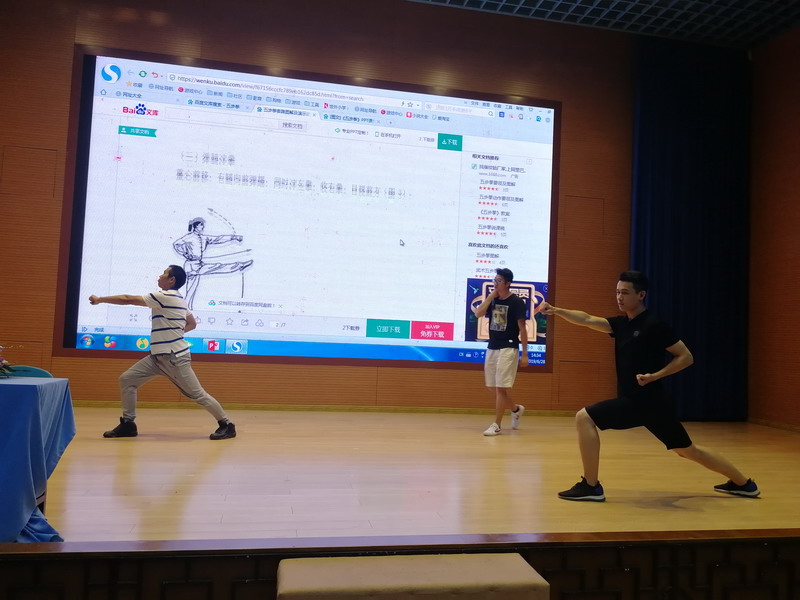 在本次教工運動會上,瞿湖老師攜手其他體育教師帶領大家一起學習武術中的簡單套路“五步拳”。大家一起跟著瞿老師,從武術中的“拳、掌、勾”基本動作學起,再過渡到五步拳的完整動作。簡單的武術動作不受場地和時間的限制,能調節平日里緊張的學習和工作。