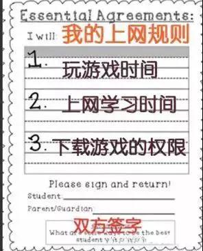 除此之外,對于孩子們非常喜歡的iPad、電腦、手機(jī)、網(wǎng)絡(luò)等等這些多媒體設(shè)備的使用,Andy老師也對各位家長有一個非常好的建議,那就是在今天和孩子們一起來簽一個多媒體協(xié)議!接下來會跟各位介紹兩種可以在家里使用的家庭協(xié)議的例子。