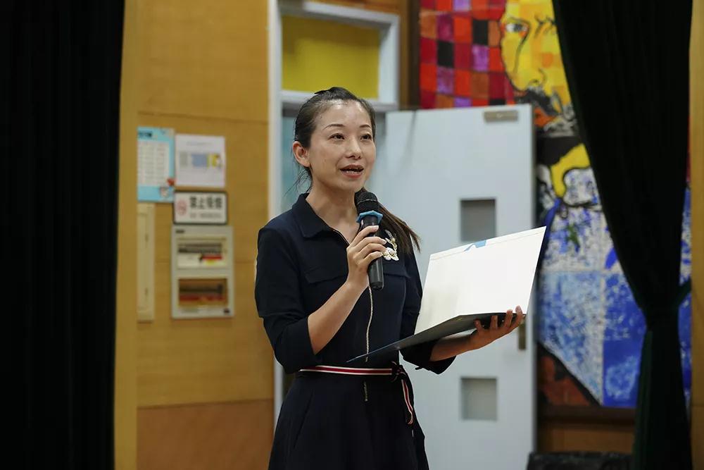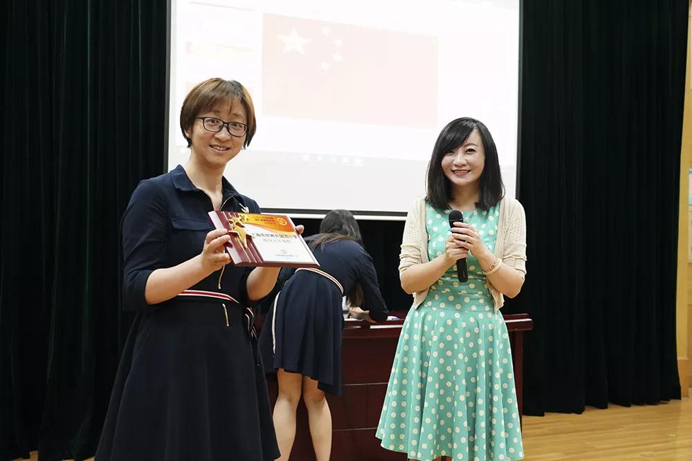 隨后,世外小學張悅穎校長向學校境內五年級組頒發區文明組室榮譽獎牌。五年級組湯瑩老師代表上臺領獎,并感謝大家對于他們年級組的關心和支持!