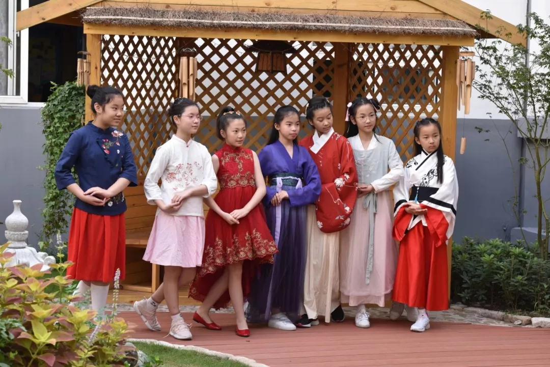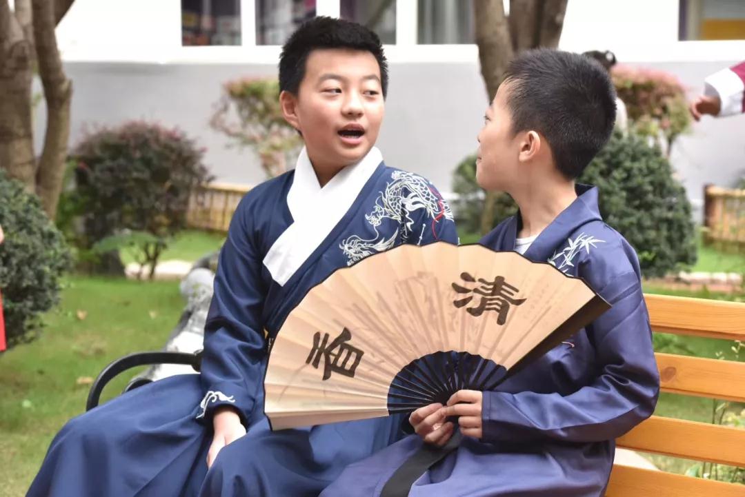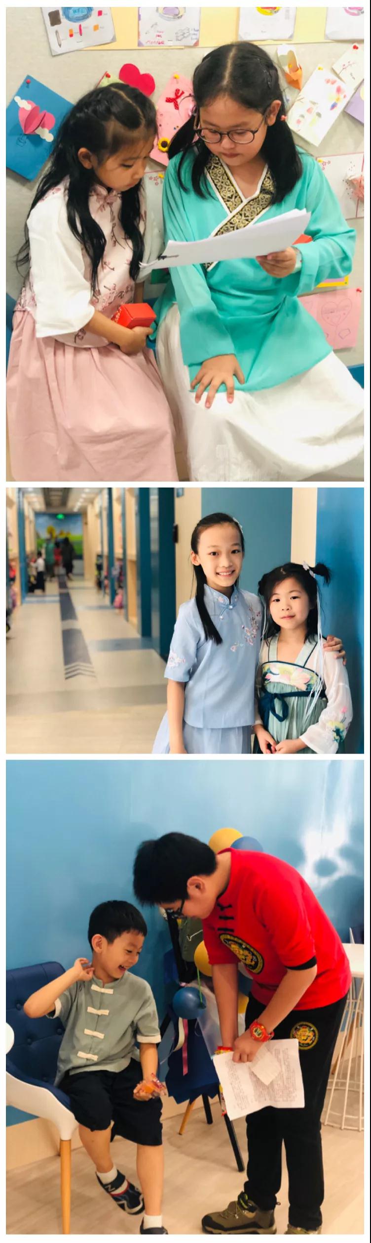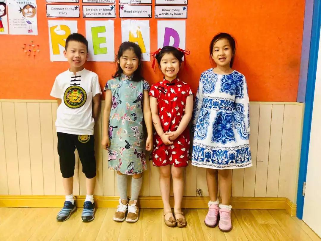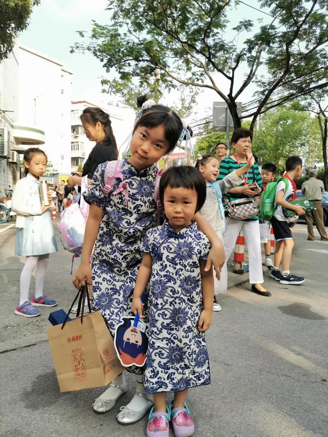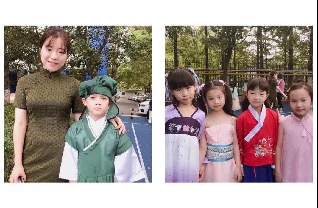 一大早,孩子們就身著具有中國元素的服裝來到學(xué)校。校門口,“嫦娥姐姐”在執(zhí)勤,“美猴王”熱情地跟老師打招呼,“李小龍”有點害羞匆匆趕路,還有祖孫親子裝、姐妹裝等非常亮眼的裝扮。早鍛煉時,老師們忙著在書法教室、小花園、大操場給孩子們用相機捕捉難忘的時刻。