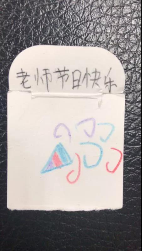 剛拿到賀卡的時(shí)候,老師覺(jué)得這小孩太隨意了,無(wú)論怎樣也要找張干凈點(diǎn)的紙吧。可是后來(lái)老師們發(fā)現(xiàn),這孩子給好多老師做了卡。這樣的制作過(guò)程也肯定費(fèi)了不少心思,老師猜測(cè)他肯定是在家里找不到適合做賀卡的紙張,于是變廢為寶。想著想著老師眼前就浮現(xiàn)了他找紙頭然后裁剪和制作的場(chǎng)面,突然覺(jué)得這是多么珍貴的禮物啊!
