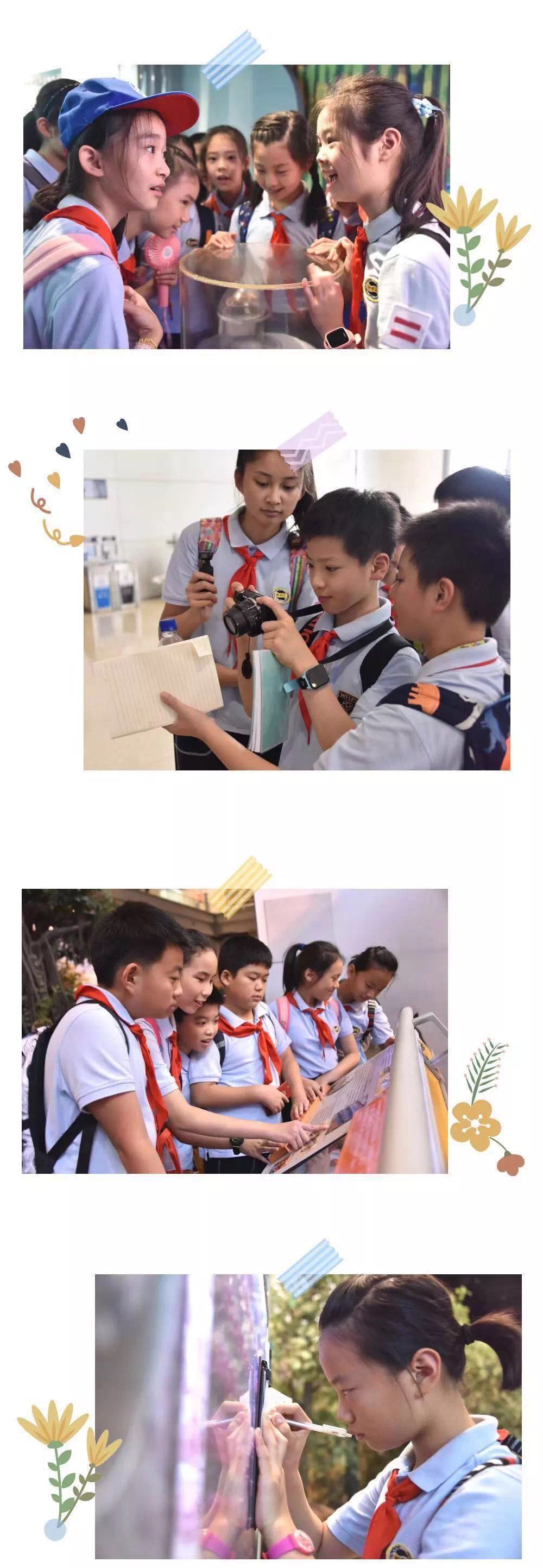 17日一大早,隊員們來到上海科技館,在門廳拍攝了集體照,留下了小學生涯最后一次秋游的美好回憶。接著,大家分別來到熱帶雨林區、機器人世界、信息時代等展區參觀。大家有的摘抄展板內容,有的體驗互動項目,有的填寫任務單,忙碌而有序地完成考察任務。