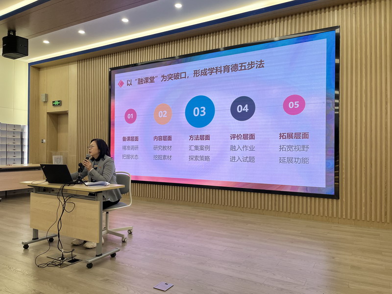 會上,金琪書記從講述紅色基因故事的傳承,到以“融課堂”為突破口,形成學科育德五步法的介紹。金琪書記還分享了西南位育中學師德師風建設培訓的主題、黨員的“五個一”標準等有效經驗和做法。