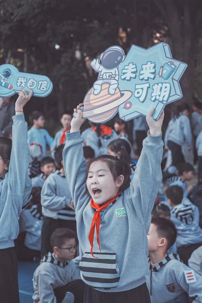 世外學子如同初升的朝陽、凝聚著不竭的活力。他們目光所及的是遠方、未來之路在他們的腳下如夏花般綻放。