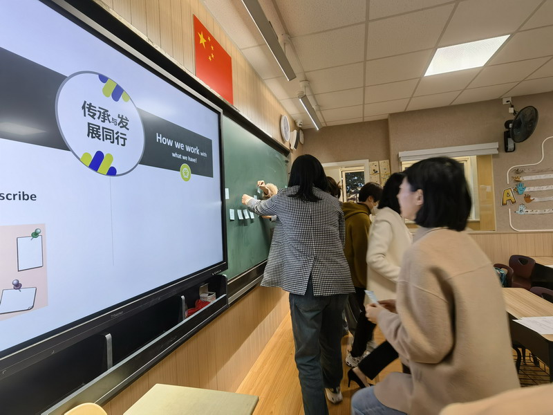 此外,老師們紛紛在便利貼上寫下自己的想法,為傳承發展世外英語特色獻計獻策。