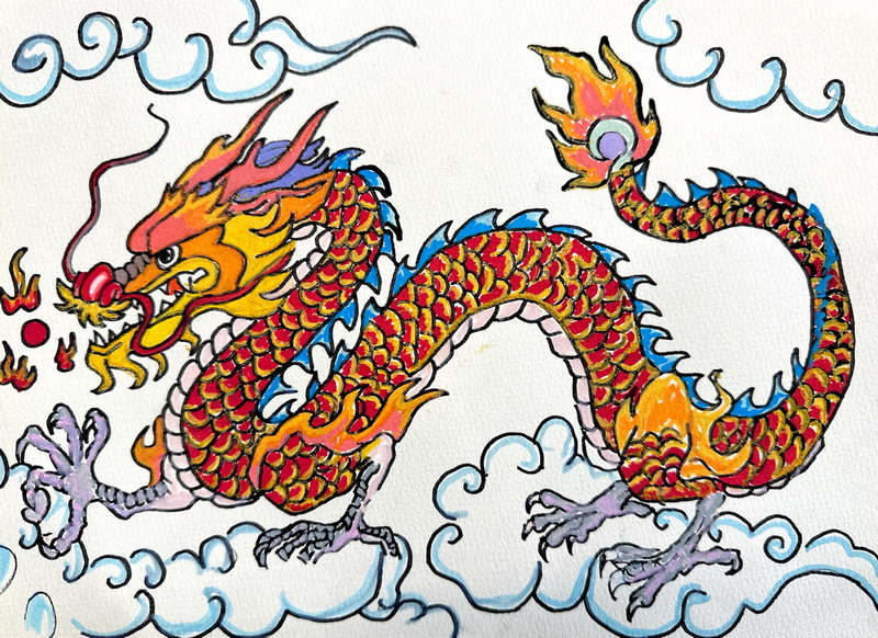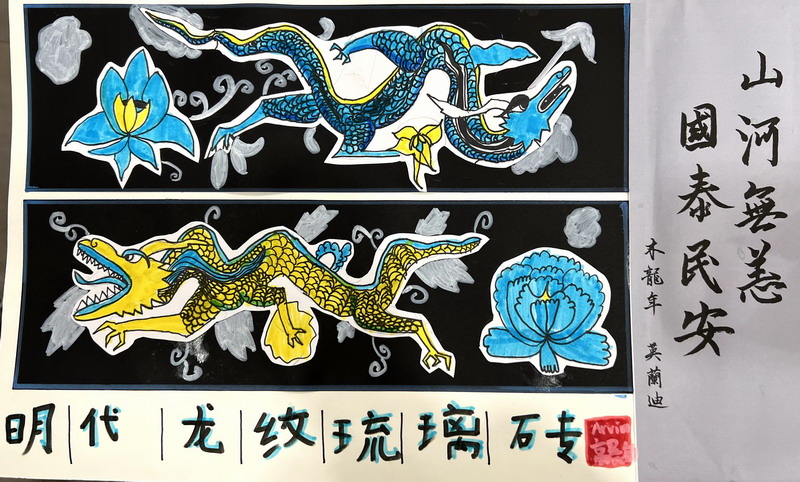 “龍”是中華民族的圖騰。自古以來,龍既是權力的象征,也是祥瑞之兆。有的同學臨摹了琉璃磚上的龍、郵票上的龍,也有的同學“完美復刻”了傳統紋樣中龍的形象,細致的描摹展現了龍的威嚴和神秘,體現出他們對中國傳統文化的深刻理解。