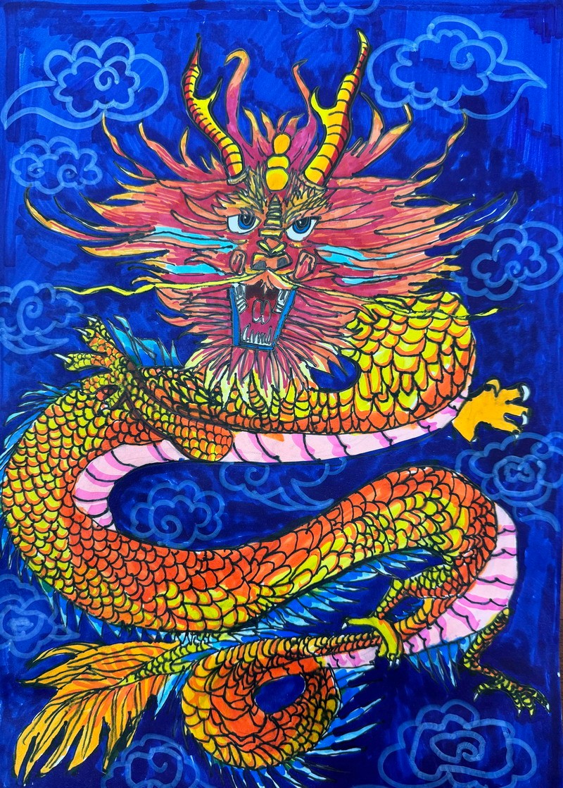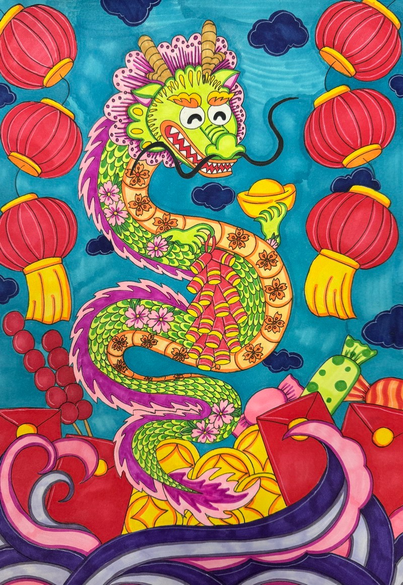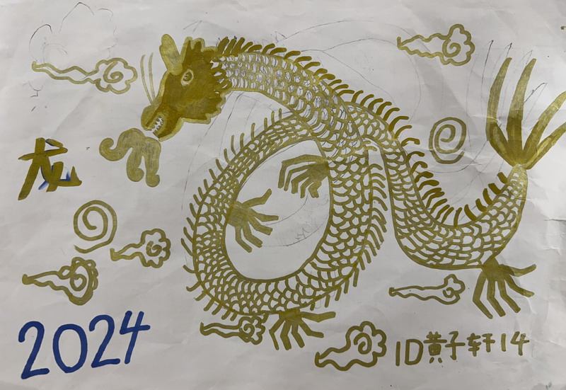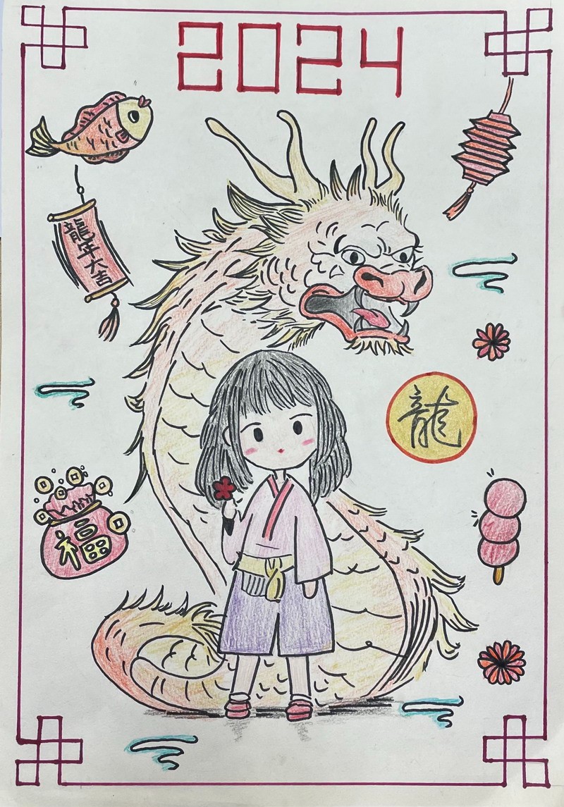 在龍年新春來臨之際,世外小學舉行了“龍騰盛世”龍年迎新繪畫比賽。同學們以中國傳統生肖“龍”為主題,用畫筆表現對“龍”的獨特理解和創造。本次比賽得到了同學們的積極響應,收到了臨摹類作品近百幅,原創類作品更是超過了兩百幅。同學們各展其才,揮灑著他們的創意和熱情,為我們帶來了一系列栩栩如生、充滿新春氣息的龍年畫作。今天,讓我們先一起來欣賞臨摹類的“龍年”佳作吧!