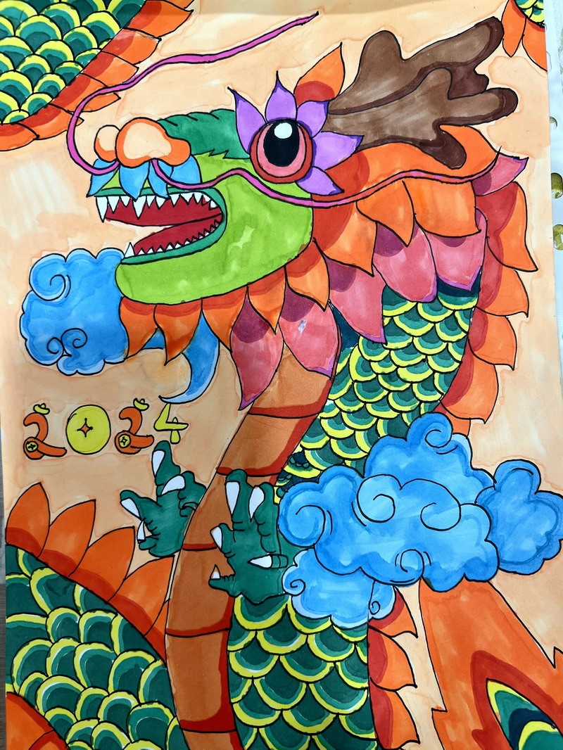 在臨摹類的比賽中,孩子們展現了對龍年主題的獨特見解和精湛的繪畫技巧。他們通過作品傳達了對傳統文化的尊重和對藝術的追求。最后,讓我們借小藝術家的作品們,祝愿大家在2024年滿載龍馬精神,龍行天下!