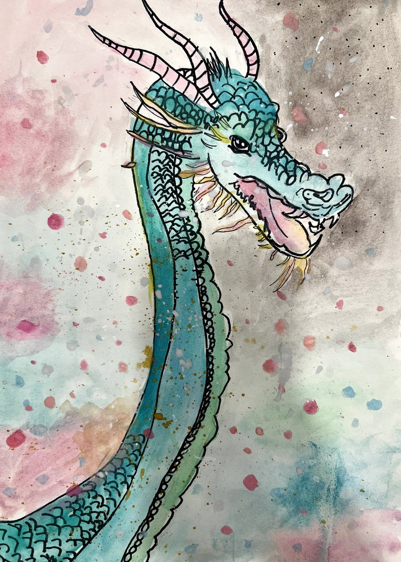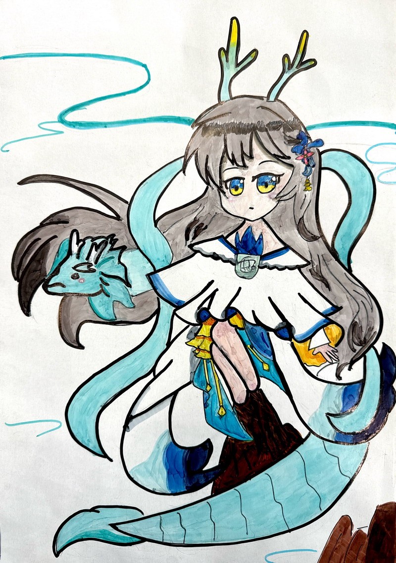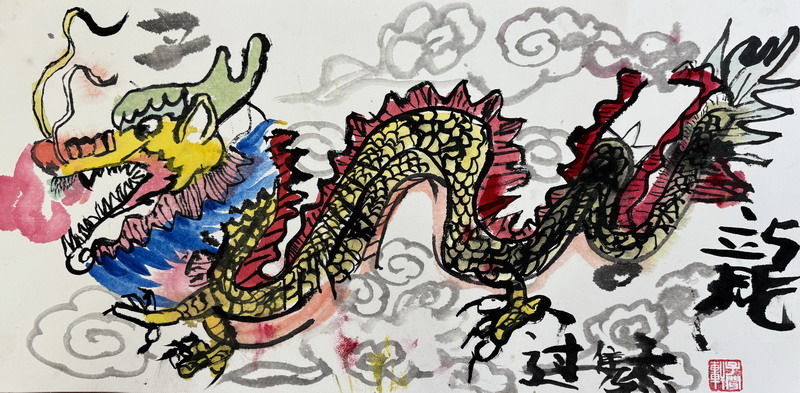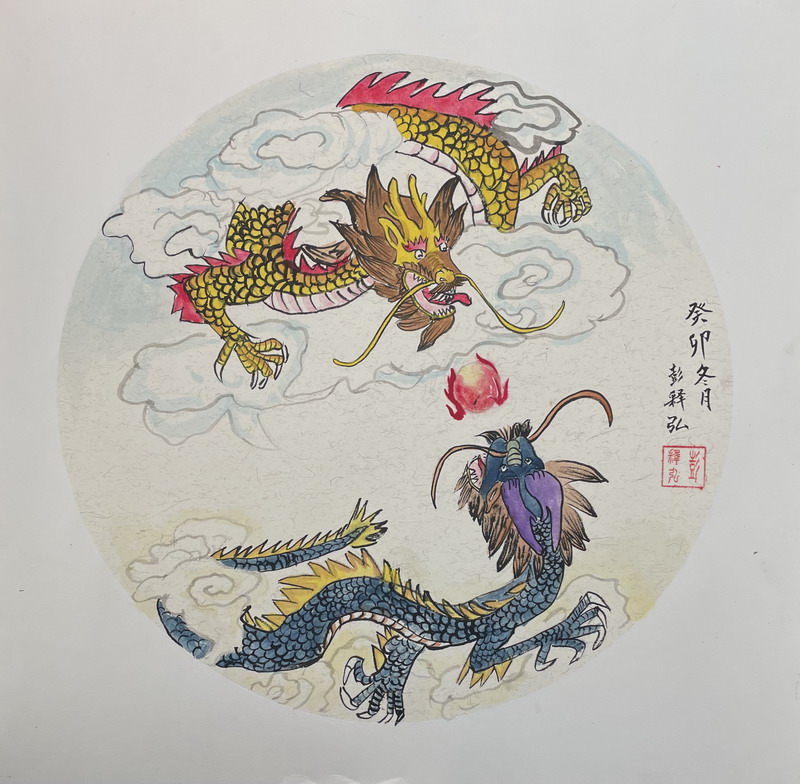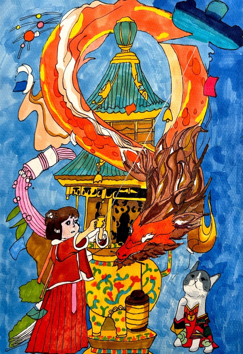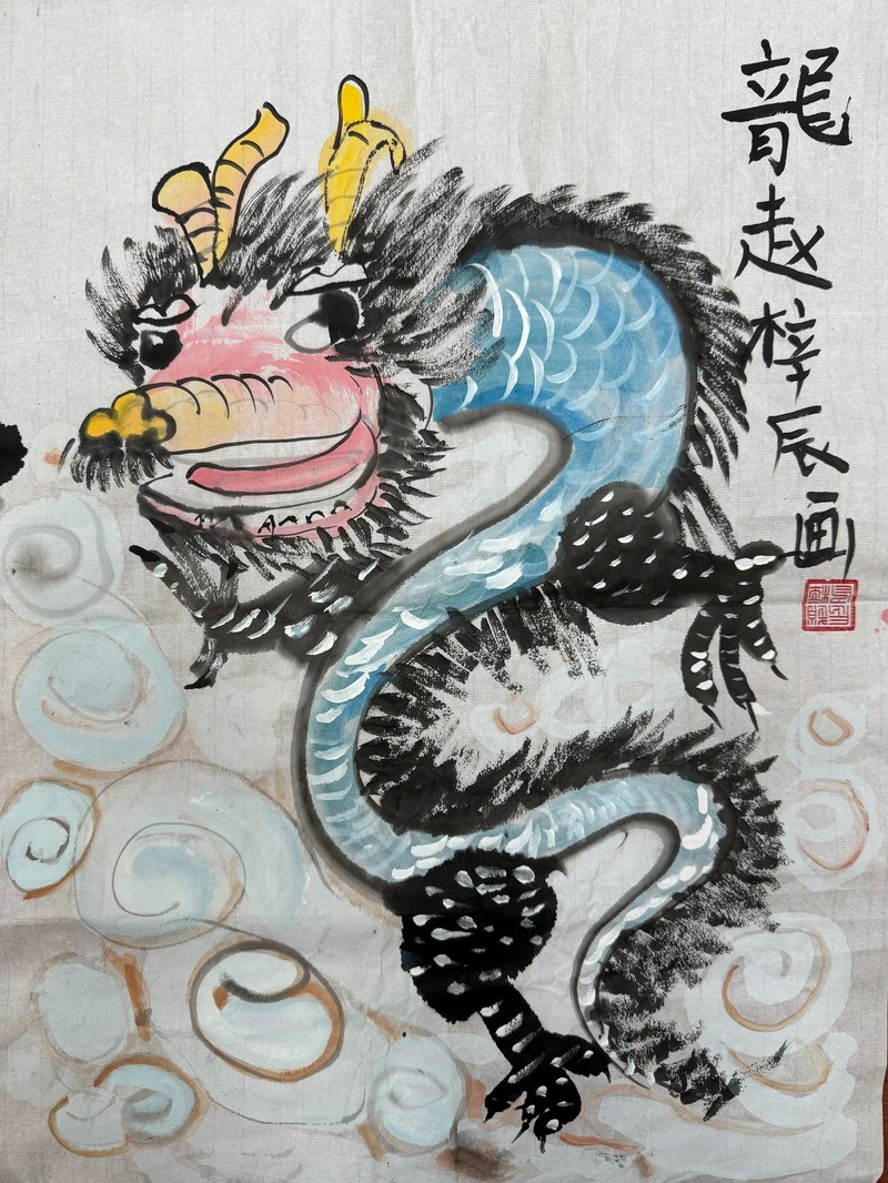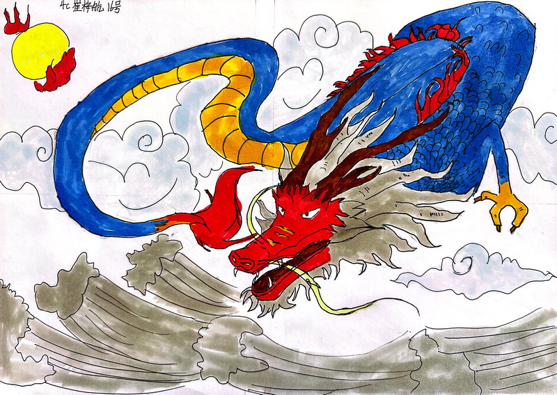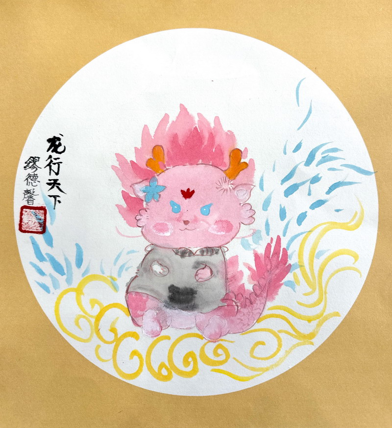 “國畫”也是非常體現繪畫功底的。有的同學將龍的形象融合進了中國畫的元素,彰顯東方美學。
