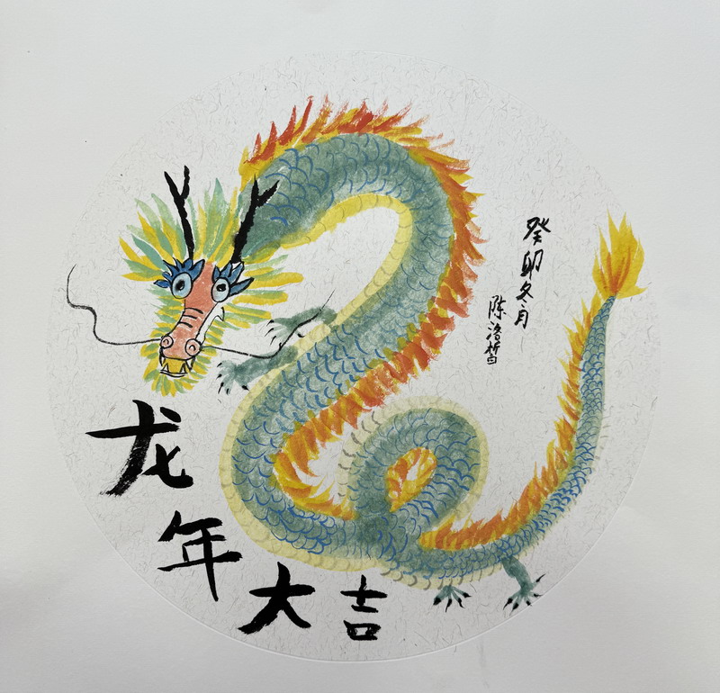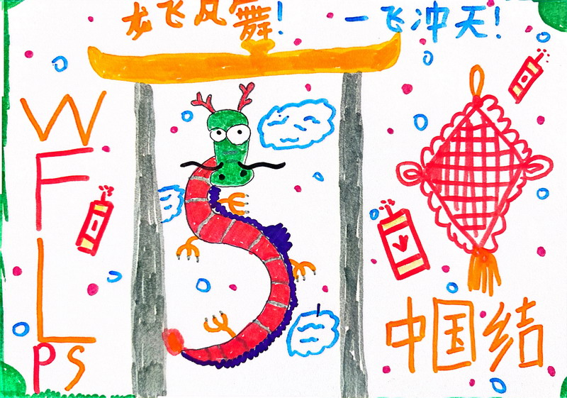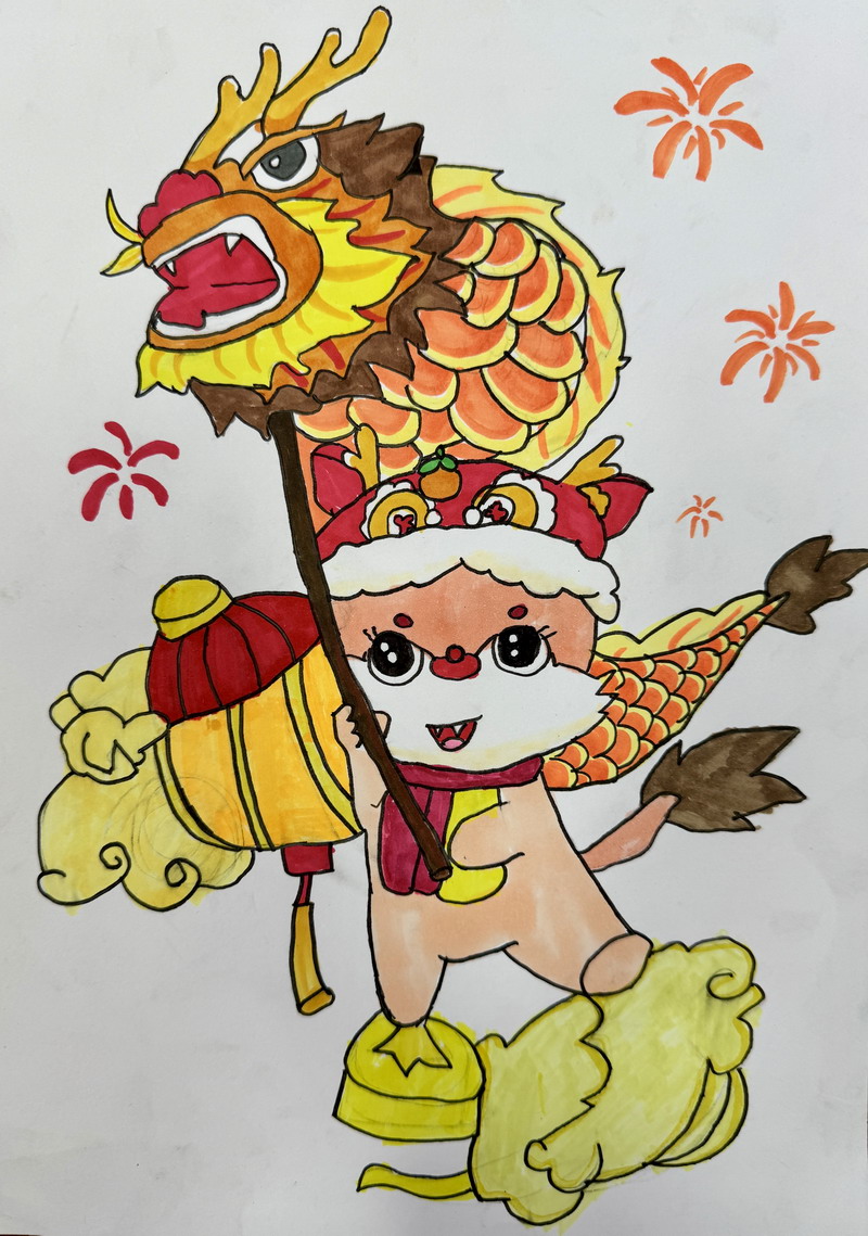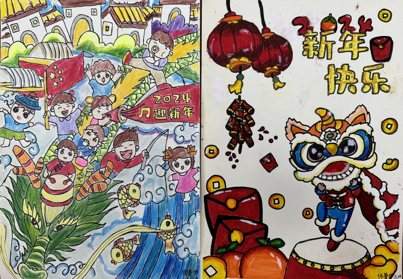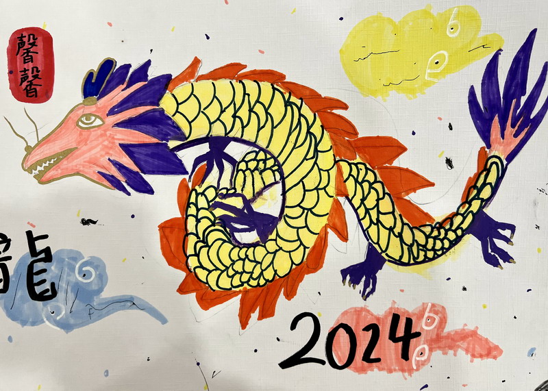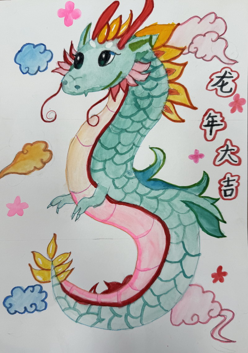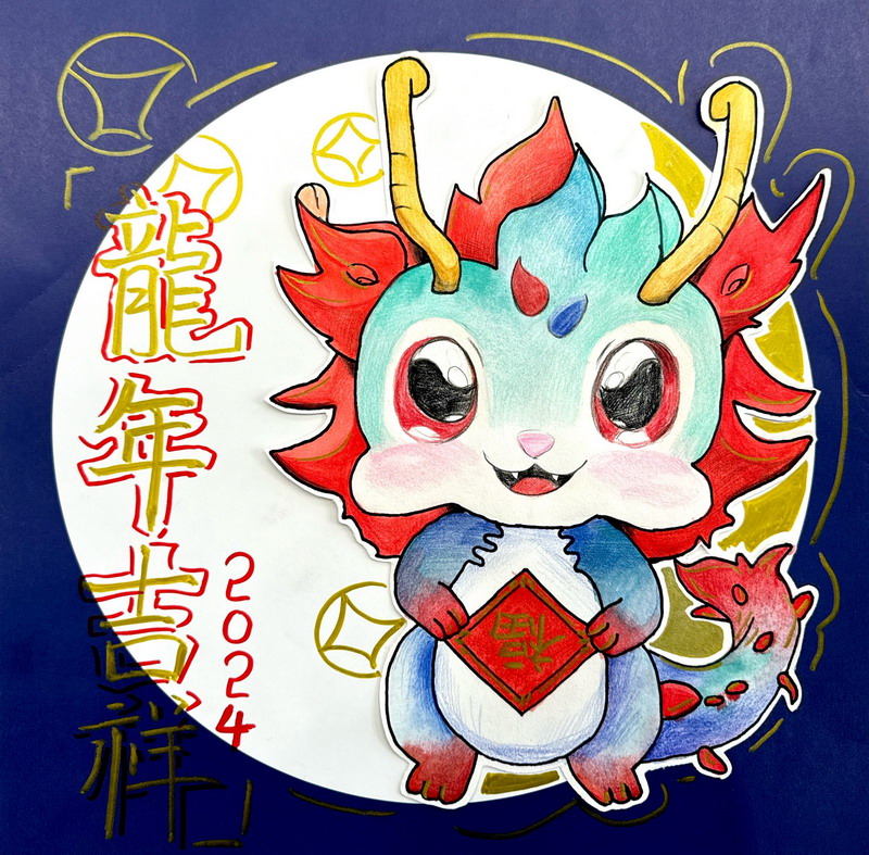 更多的同學則是在作品中融入了對新年的美好祝福。一句句“龍年大吉”,為大家送上最誠摯的祝福。