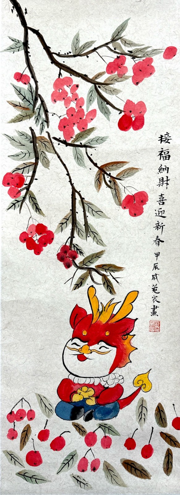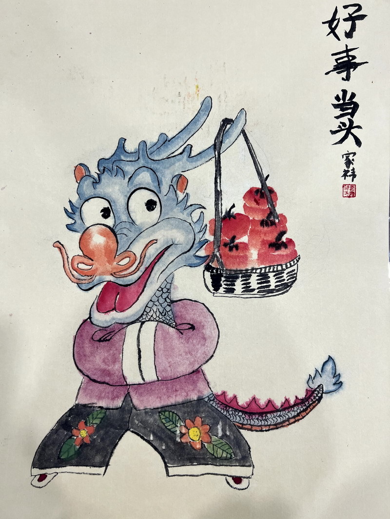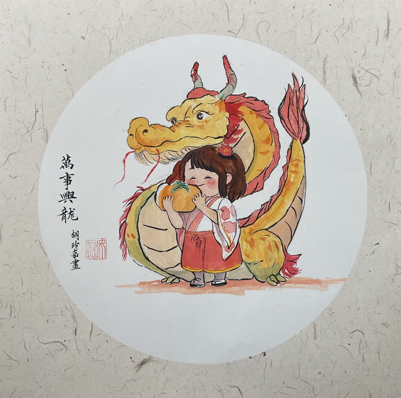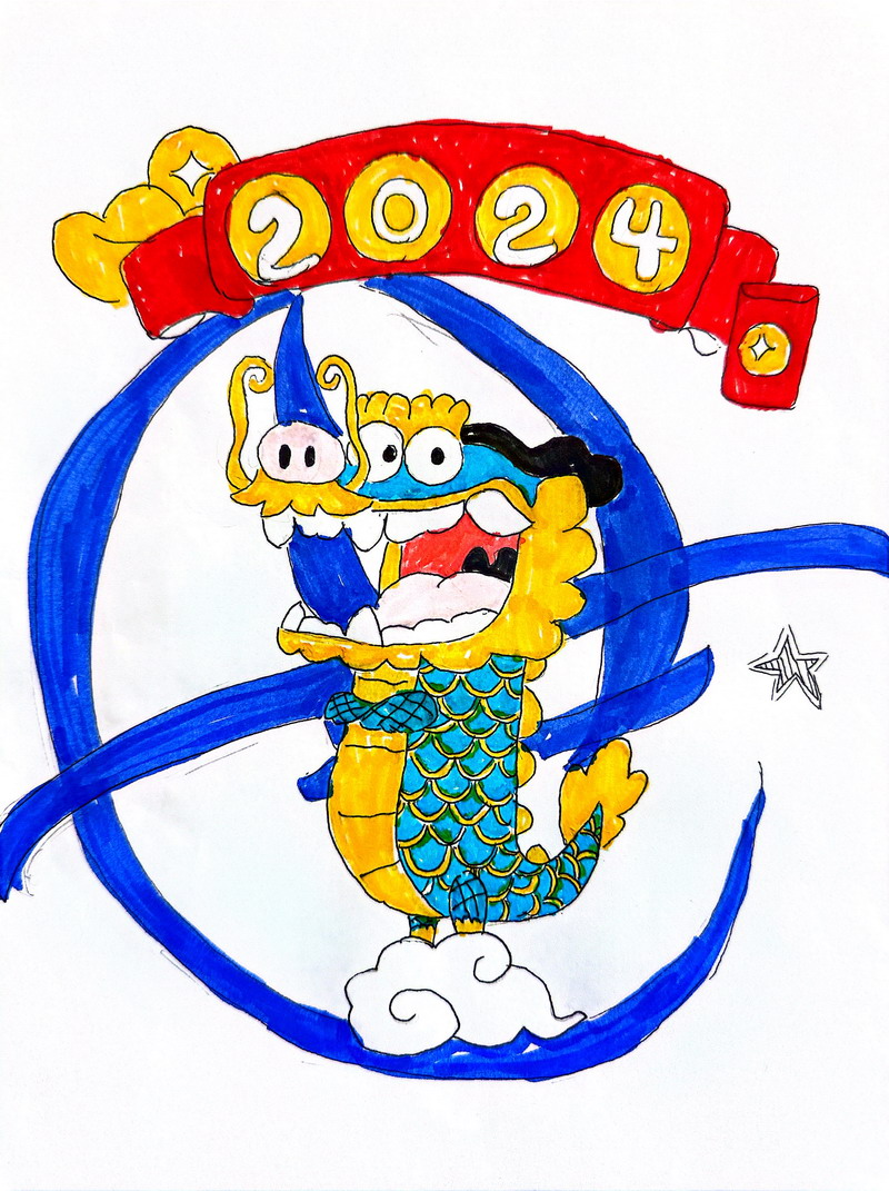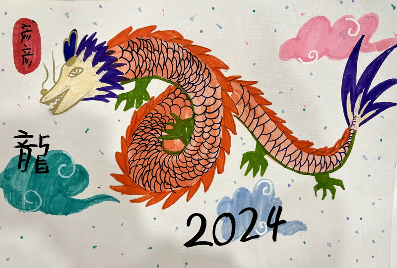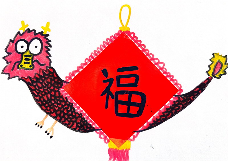 更多的同學則是在作品中融入了對新年的美好祝福。一句句“龍年大吉”,為大家送上最誠摯的祝福。