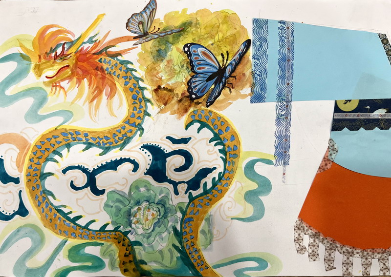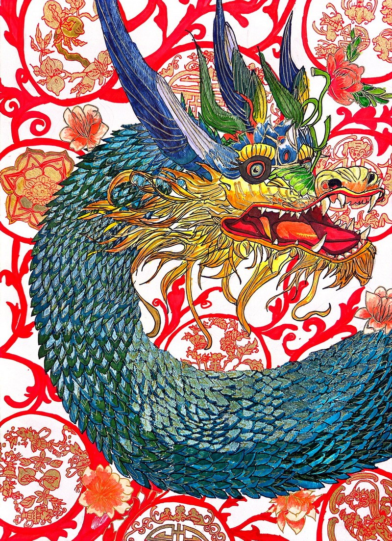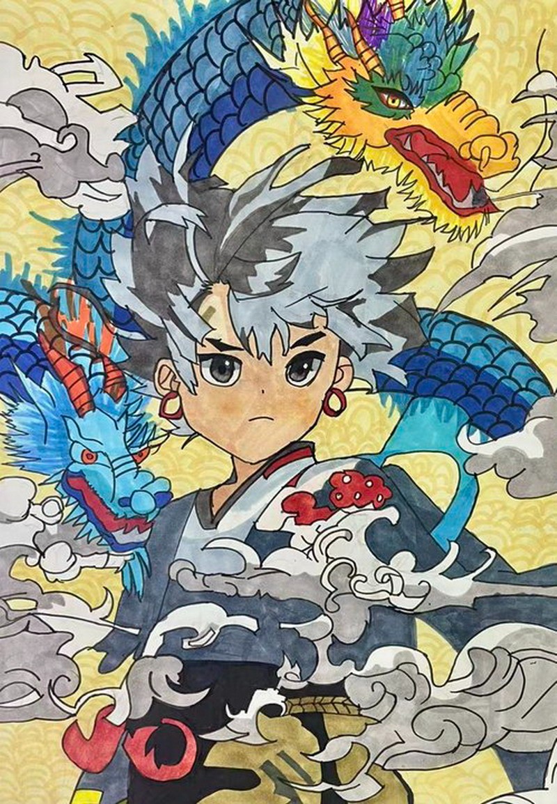 原創類的作品多以獨特的構思和表現手法來展現龍的多面性。素描、水彩、版畫、剪貼、iPad數碼產品繪畫……同學們使出了“十八般武藝”,描繪出一條條“創意龍”。