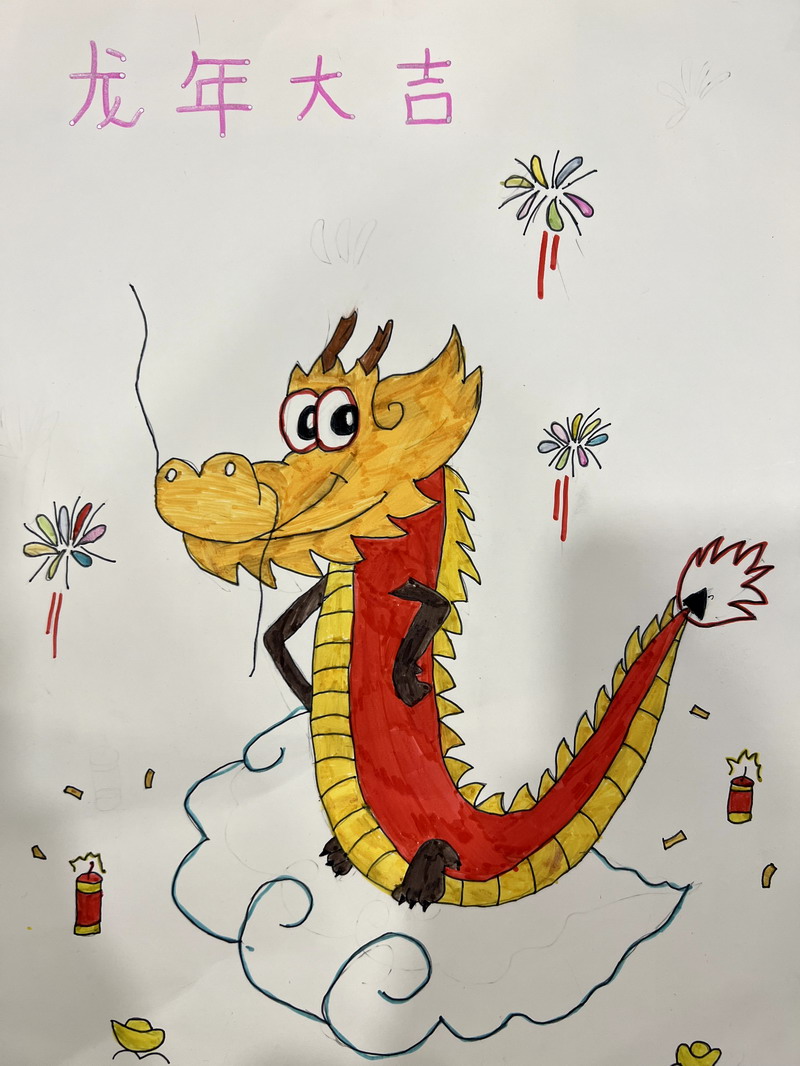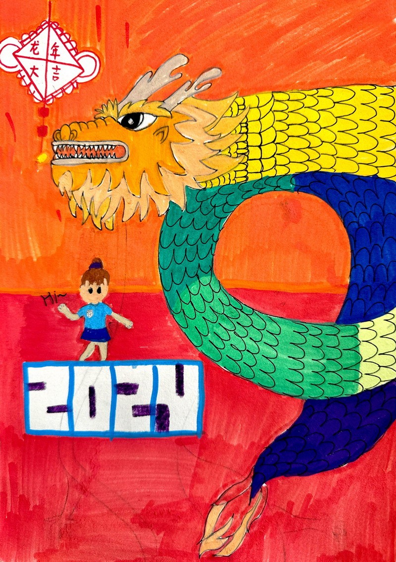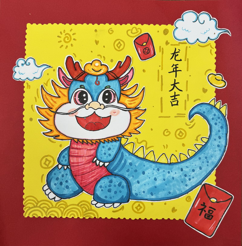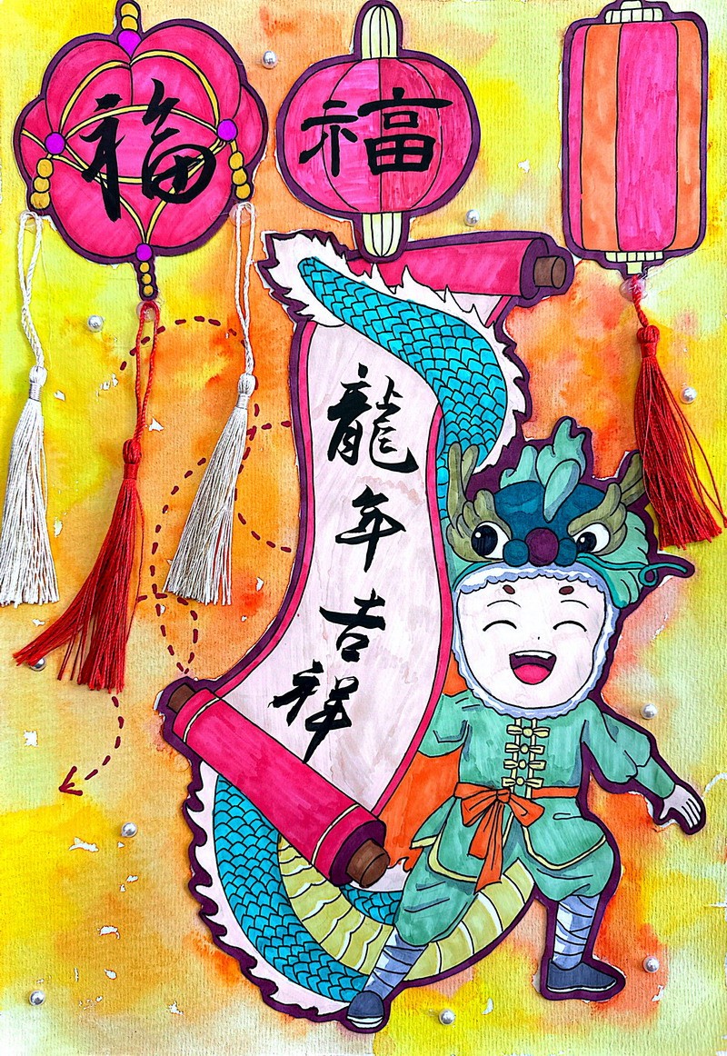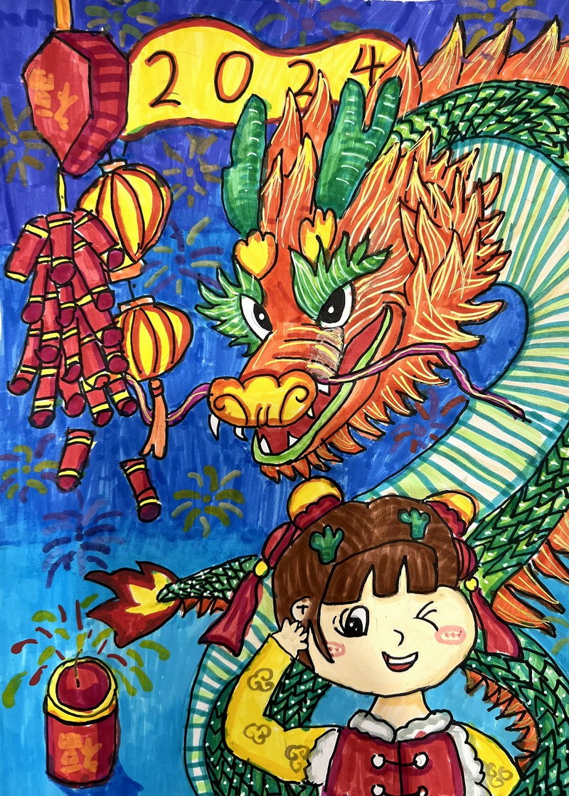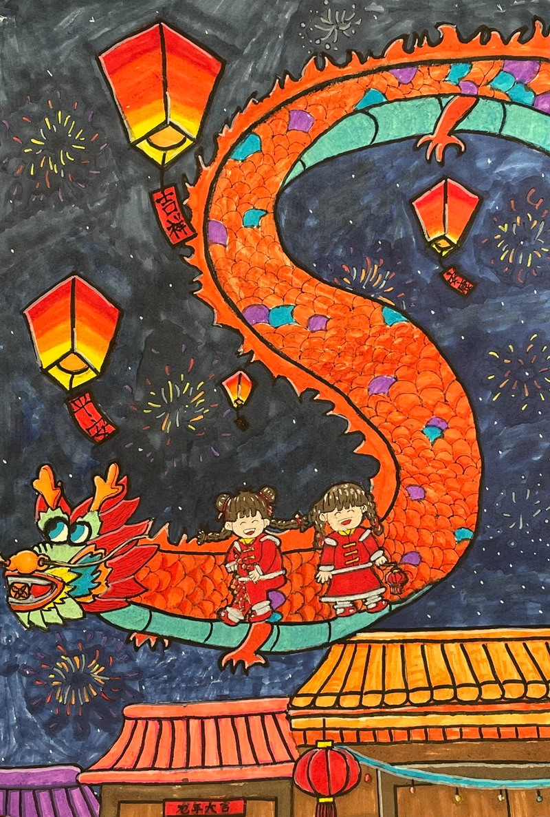 讓我們借孩子們的一幅幅佳作許下龍年的心愿。愿所有的孩子們在未來的道路上,如神龍一般,勇往直前,一飛沖天!祝愿大家在新的一年里龍行龘龘,前程朤朤!