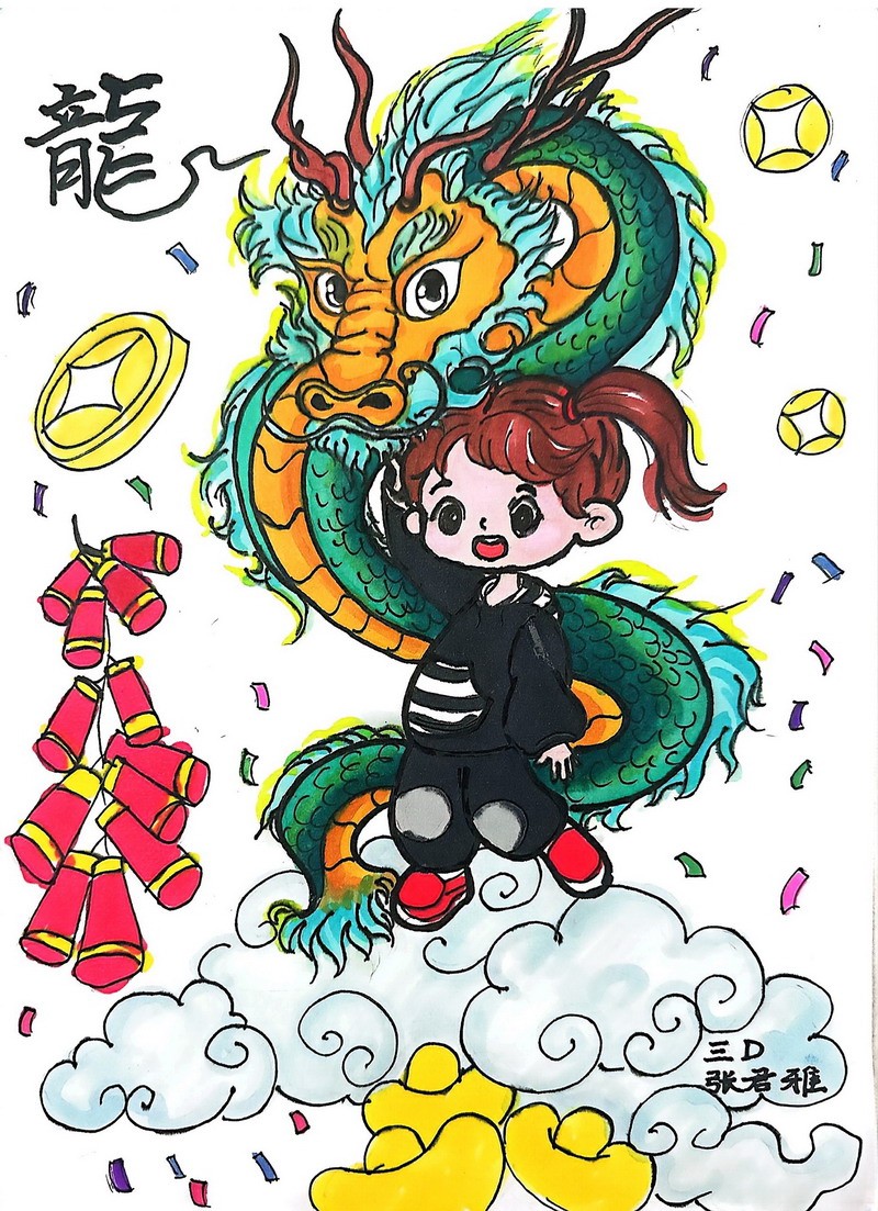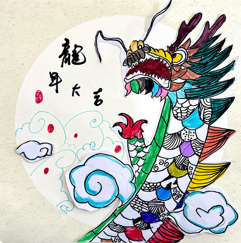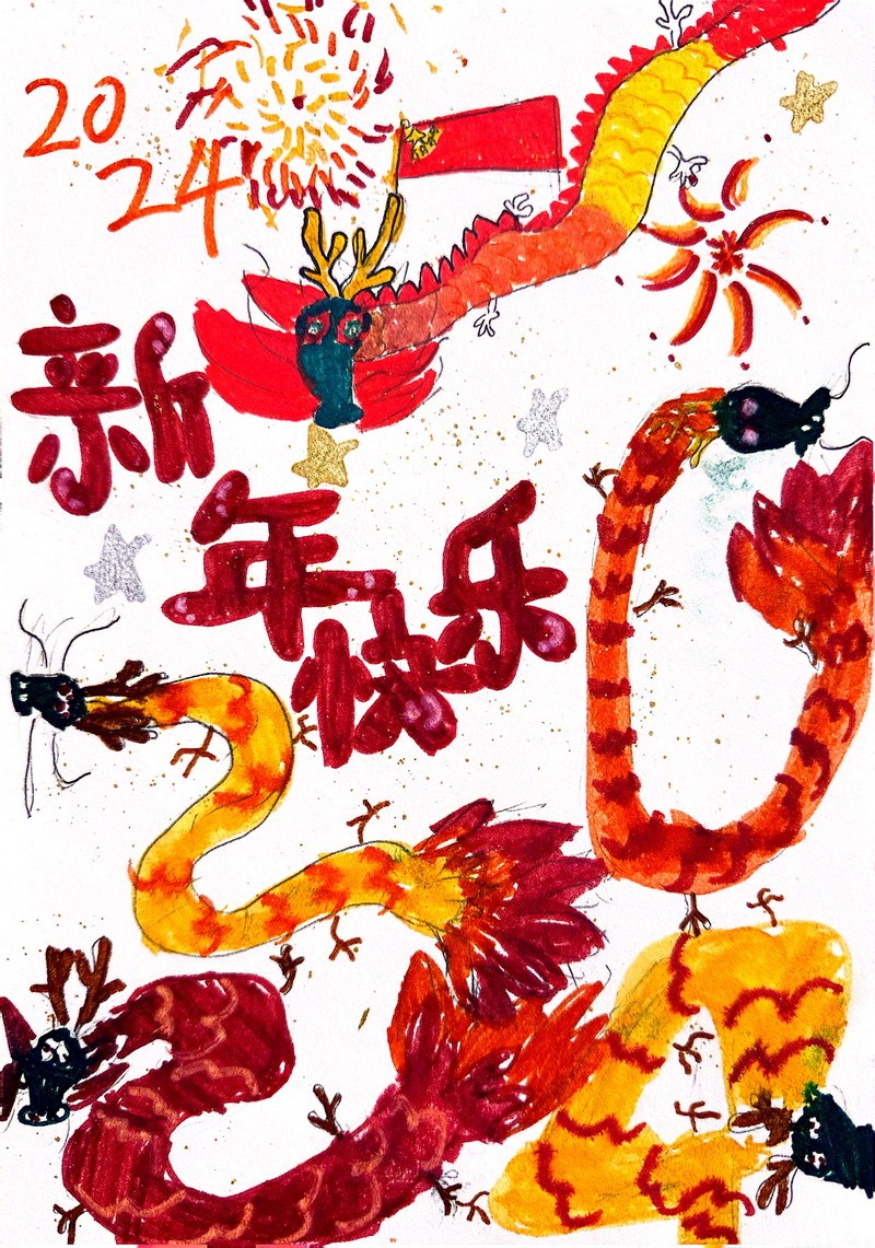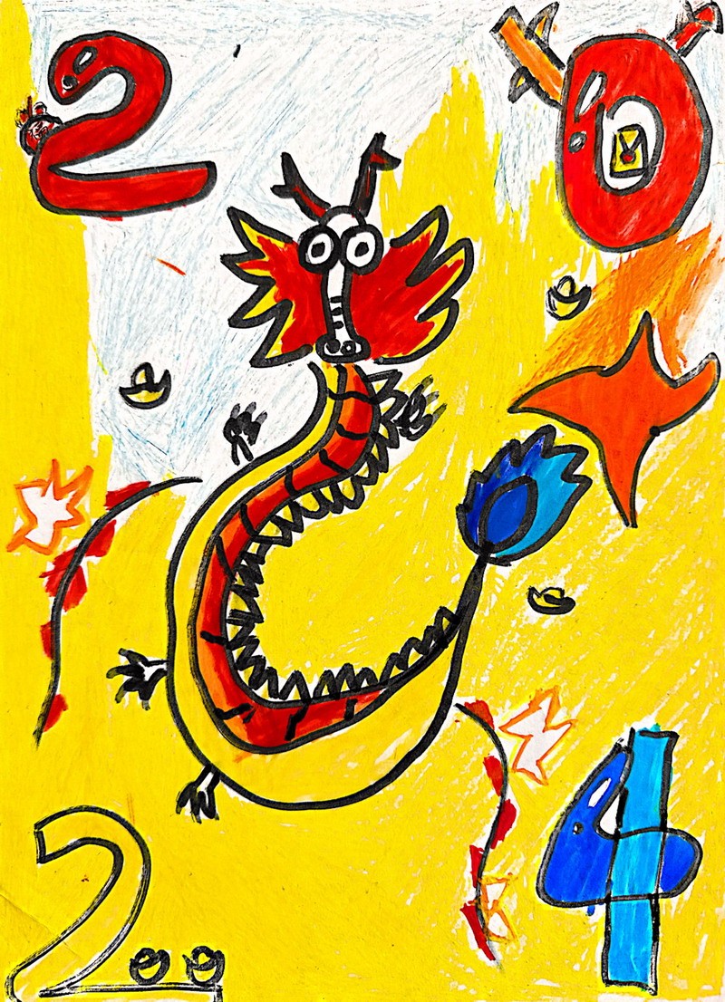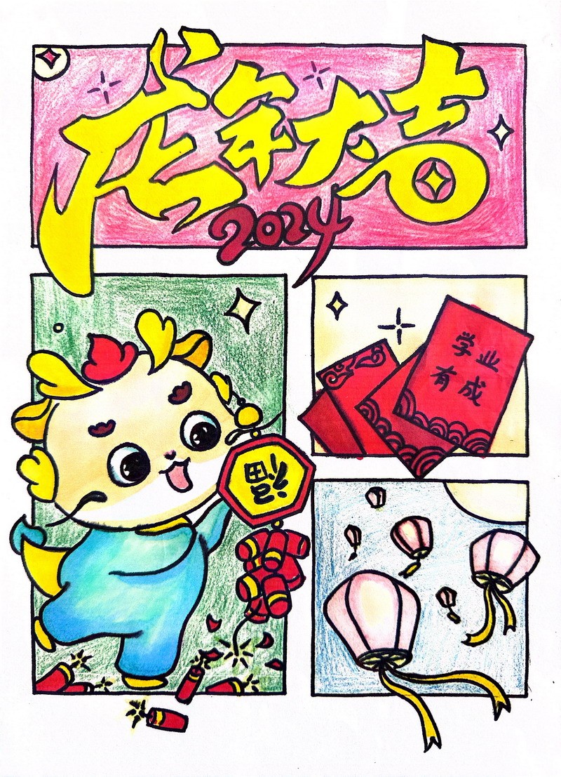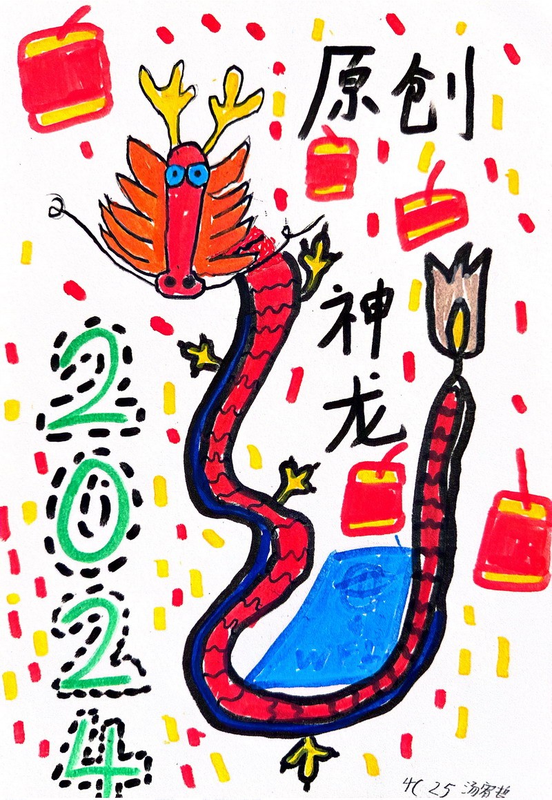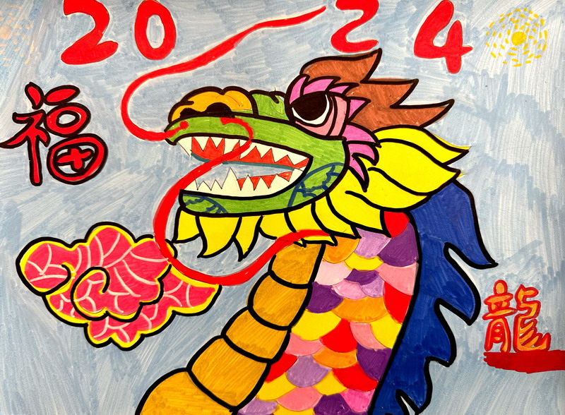 讓我們借孩子們的一幅幅佳作許下龍年的心愿。愿所有的孩子們在未來的道路上,如神龍一般,勇往直前,一飛沖天!祝愿大家在新的一年里龍行龘龘,前程朤朤!