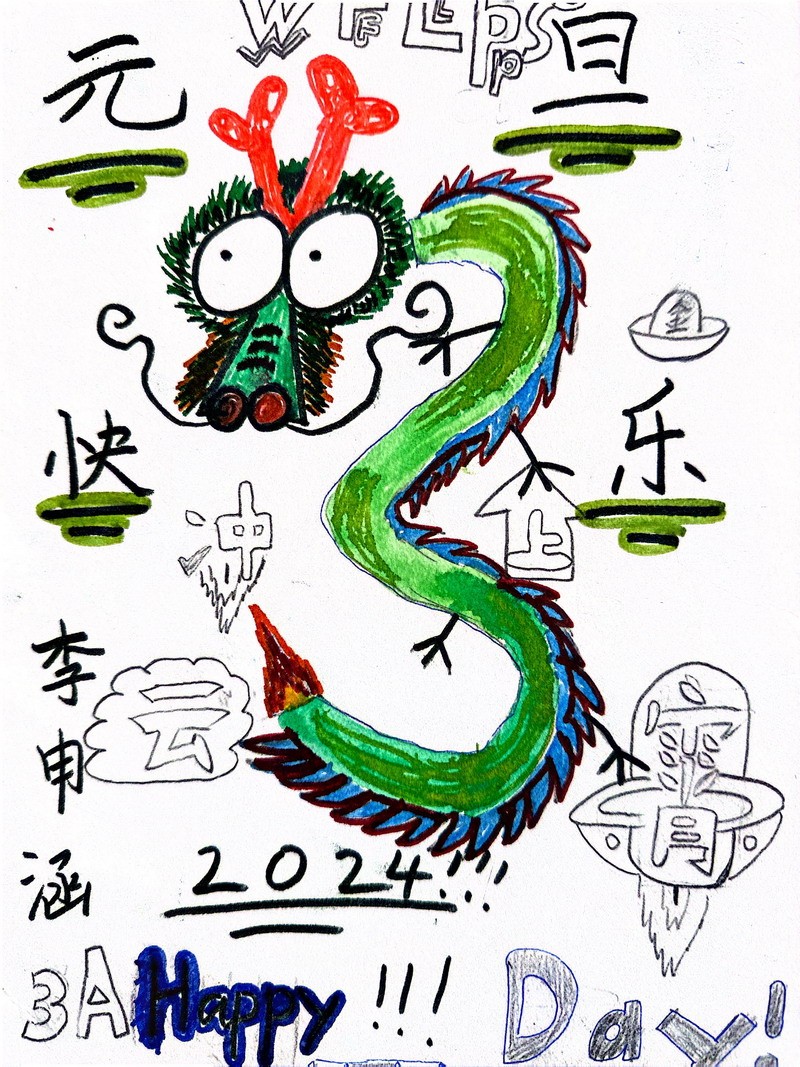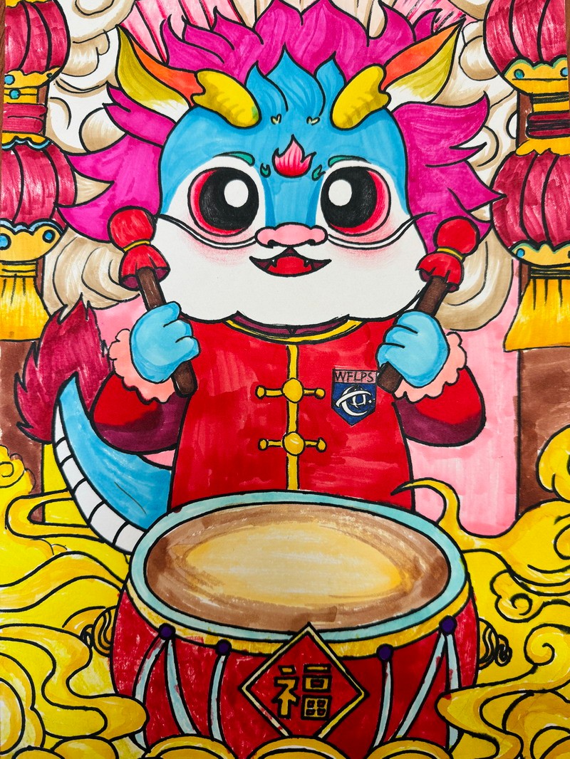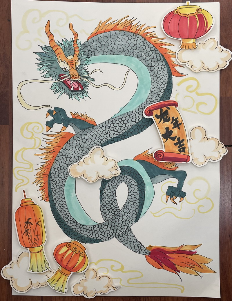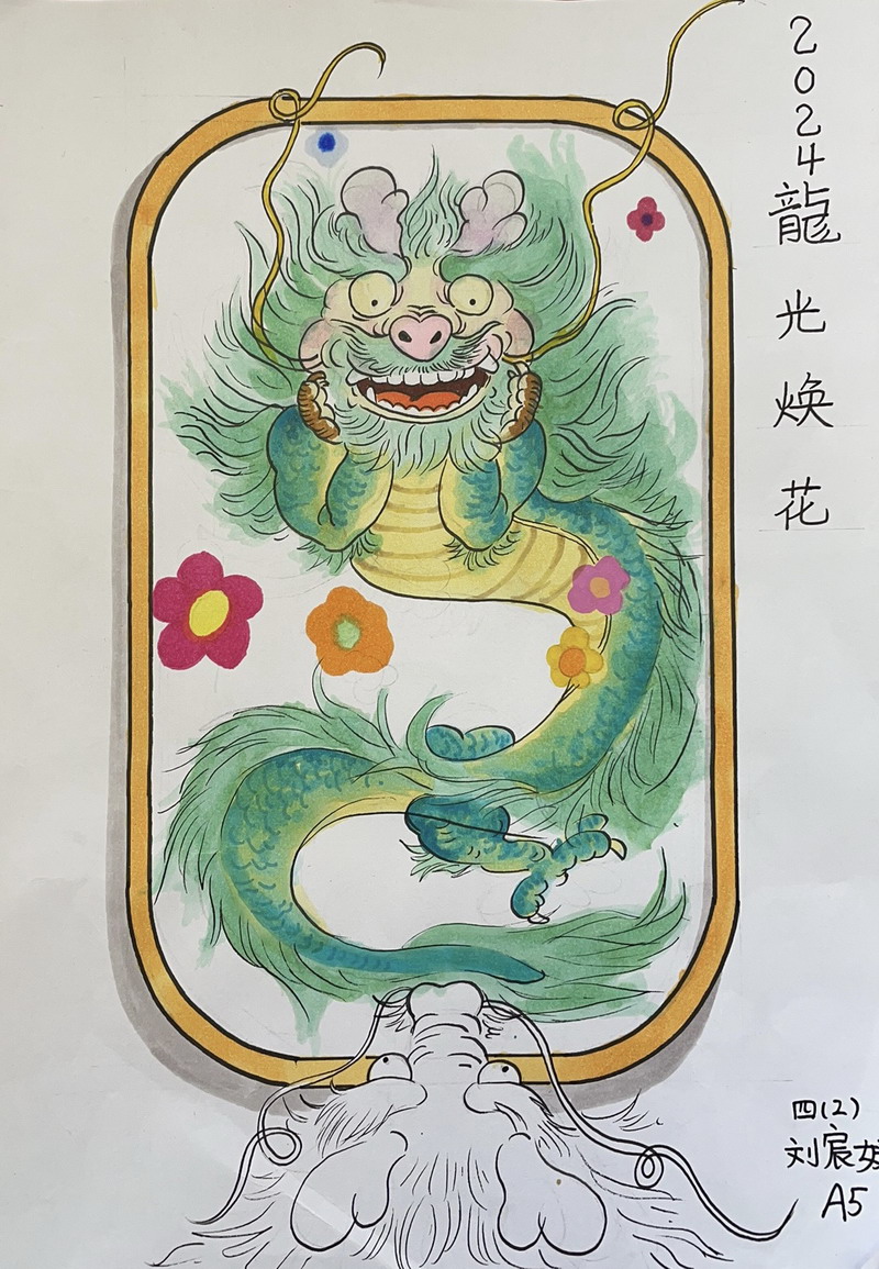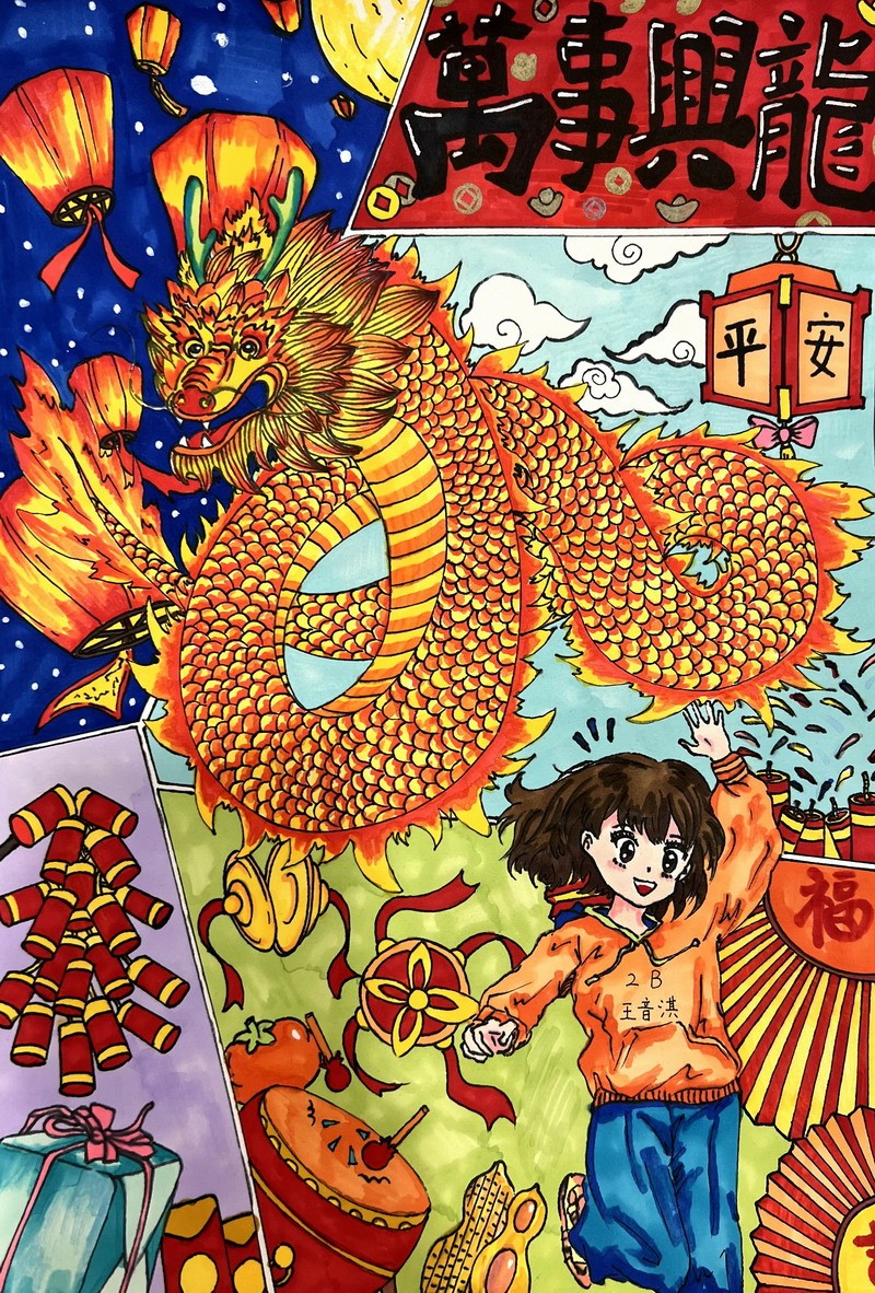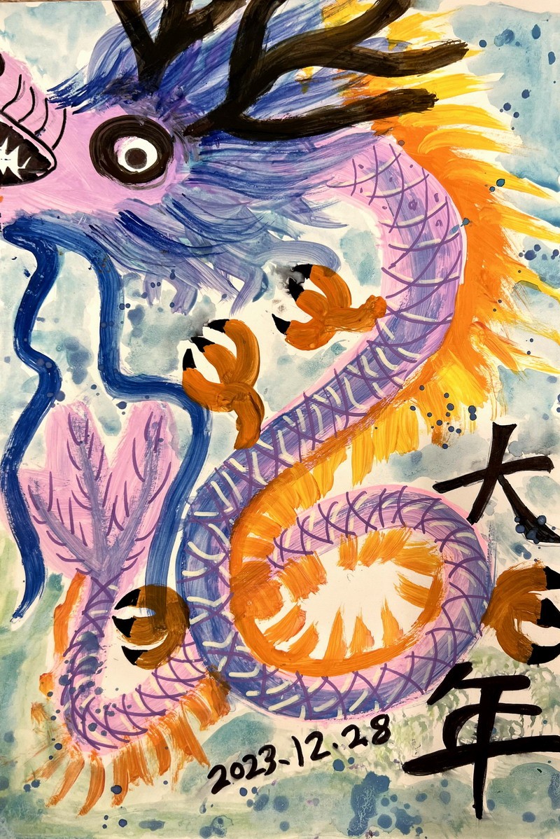 讓我們借孩子們的一幅幅佳作許下龍年的心愿。愿所有的孩子們在未來的道路上,如神龍一般,勇往直前,一飛沖天!祝愿大家在新的一年里龍行龘龘,前程朤朤!