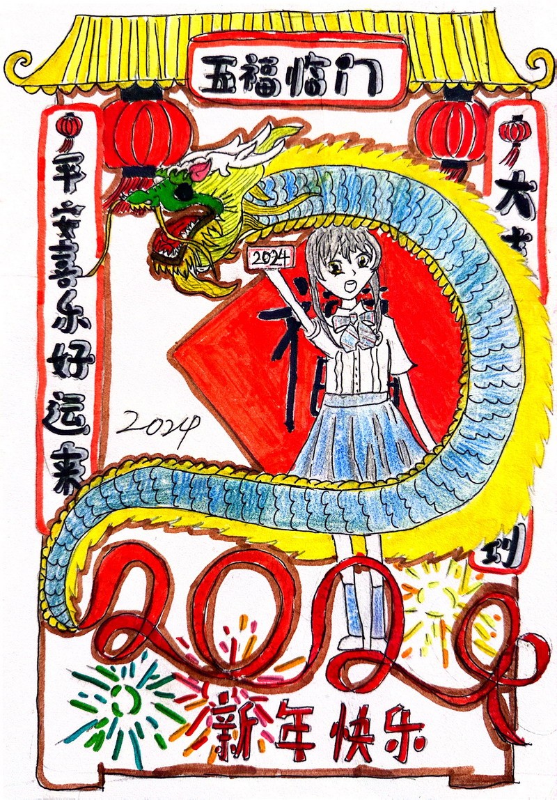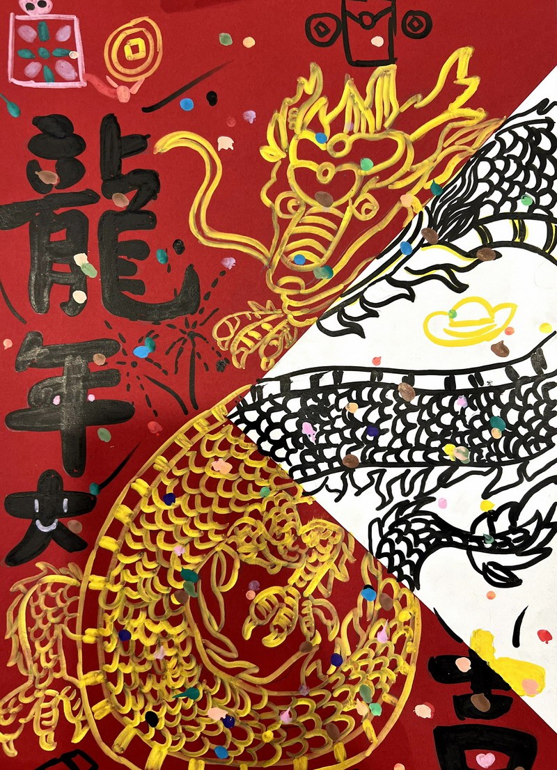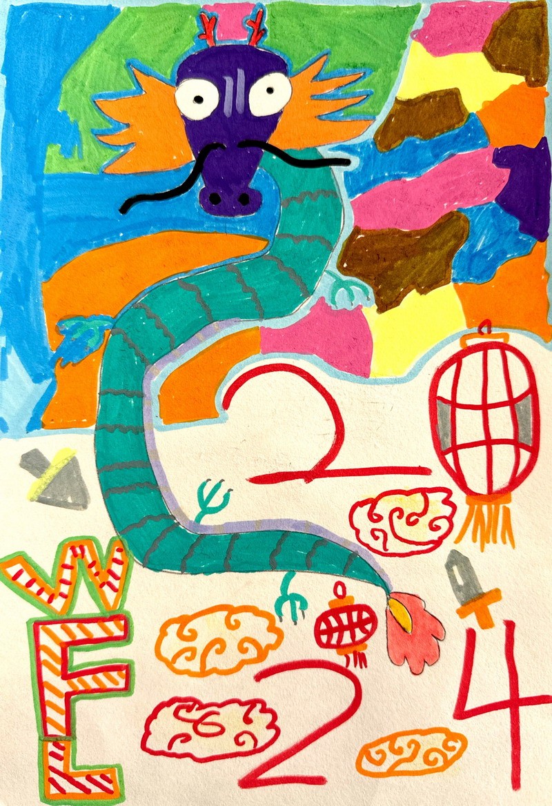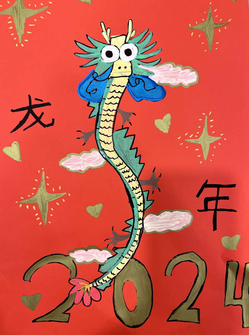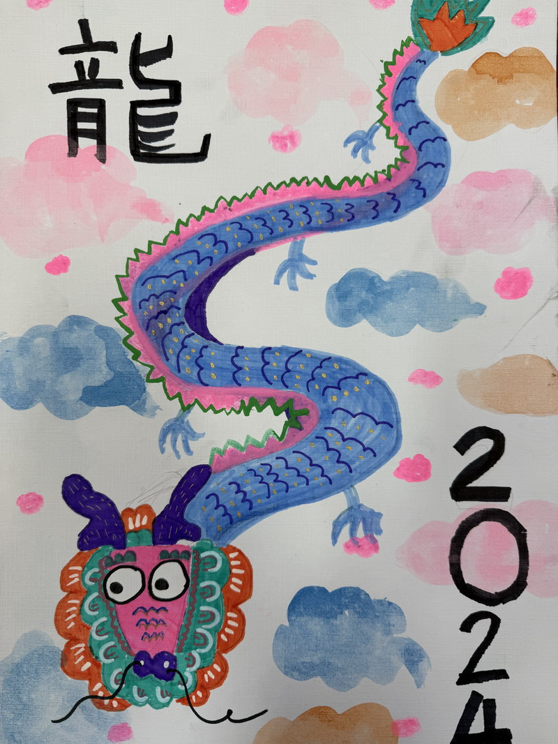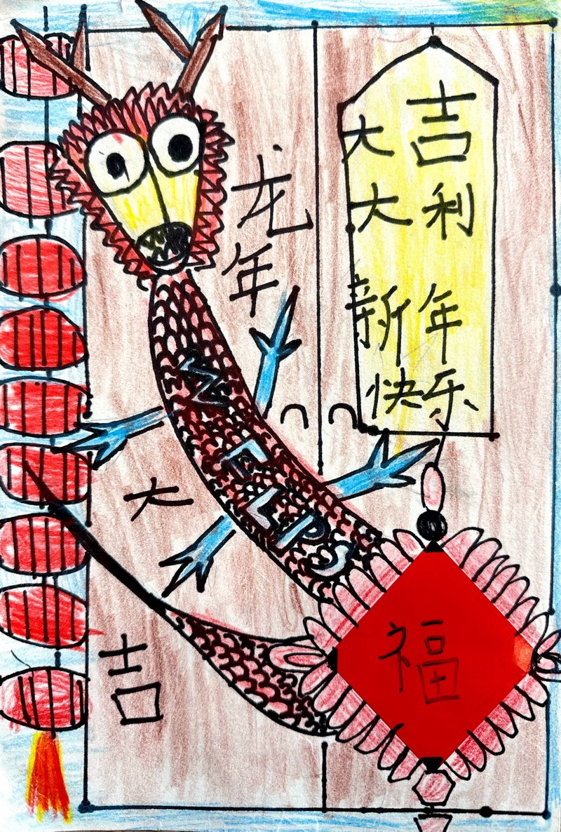 讓我們借孩子們的一幅幅佳作許下龍年的心愿。愿所有的孩子們在未來的道路上,如神龍一般,勇往直前,一飛沖天!祝愿大家在新的一年里龍行龘龘,前程朤朤!