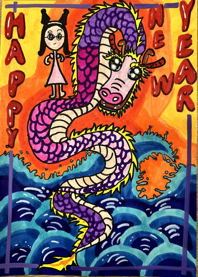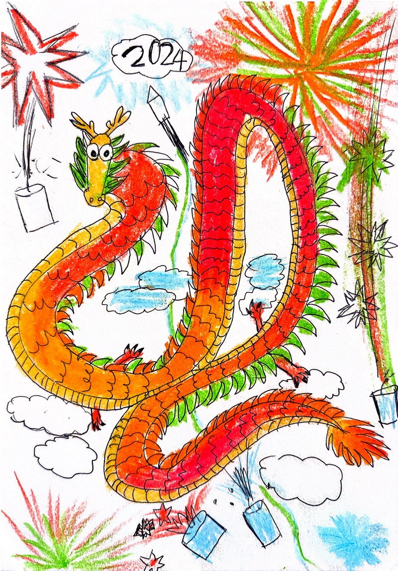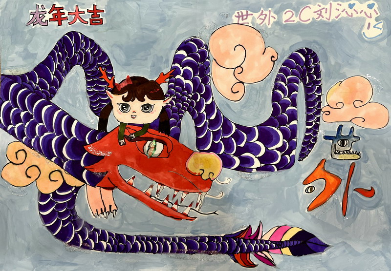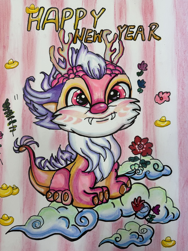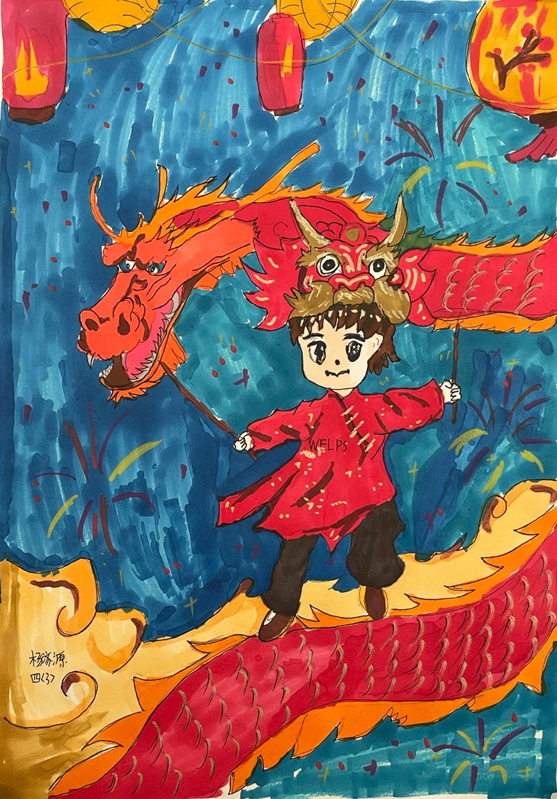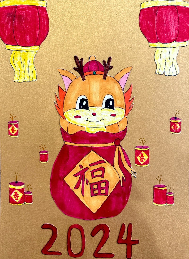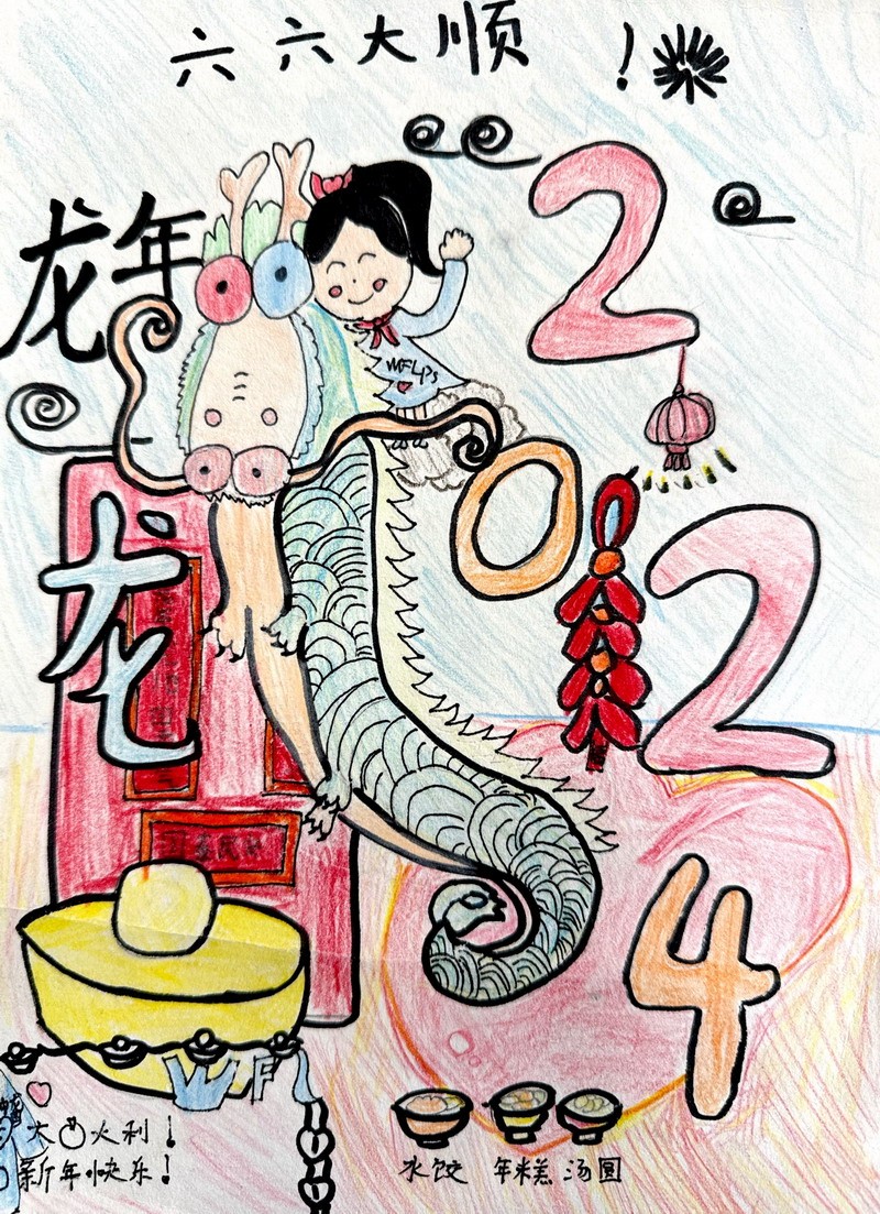讓我們借孩子們的一幅幅佳作許下龍年的心愿。愿所有的孩子們在未來的道路上,如神龍一般,勇往直前,一飛沖天!祝愿大家在新的一年里龍行龘龘,前程朤朤!