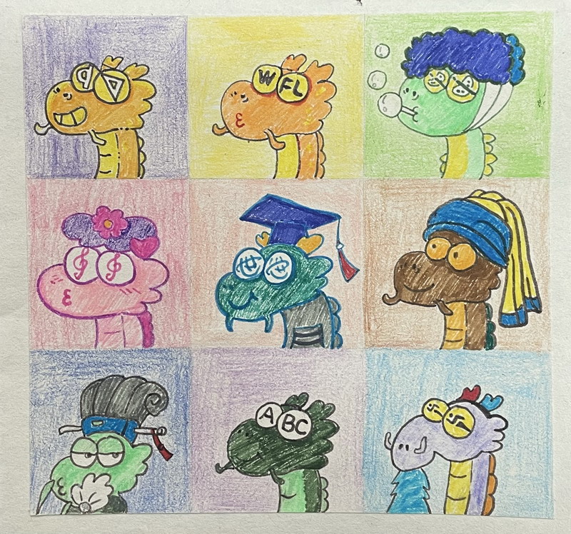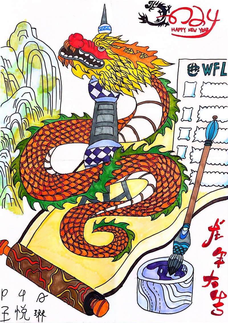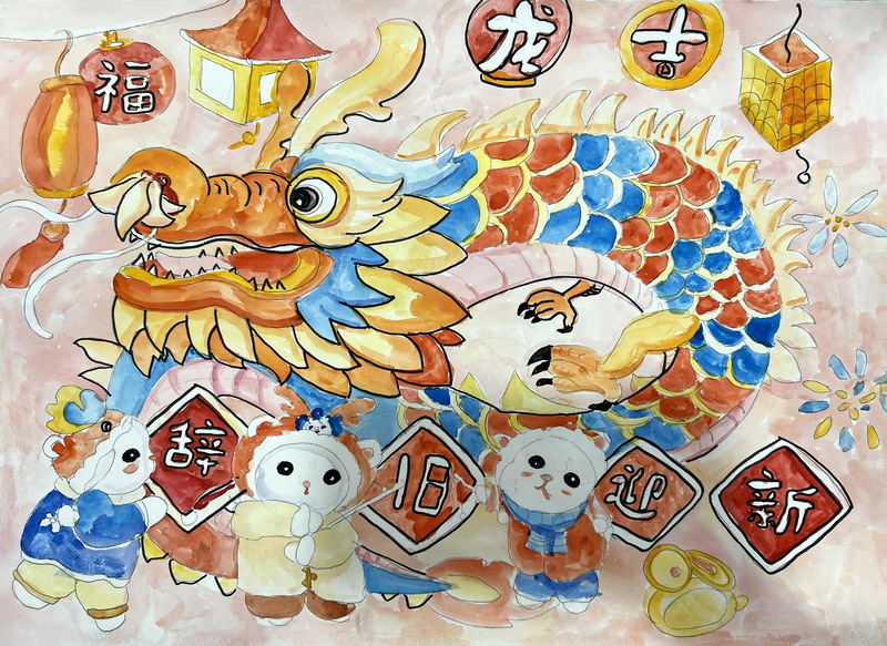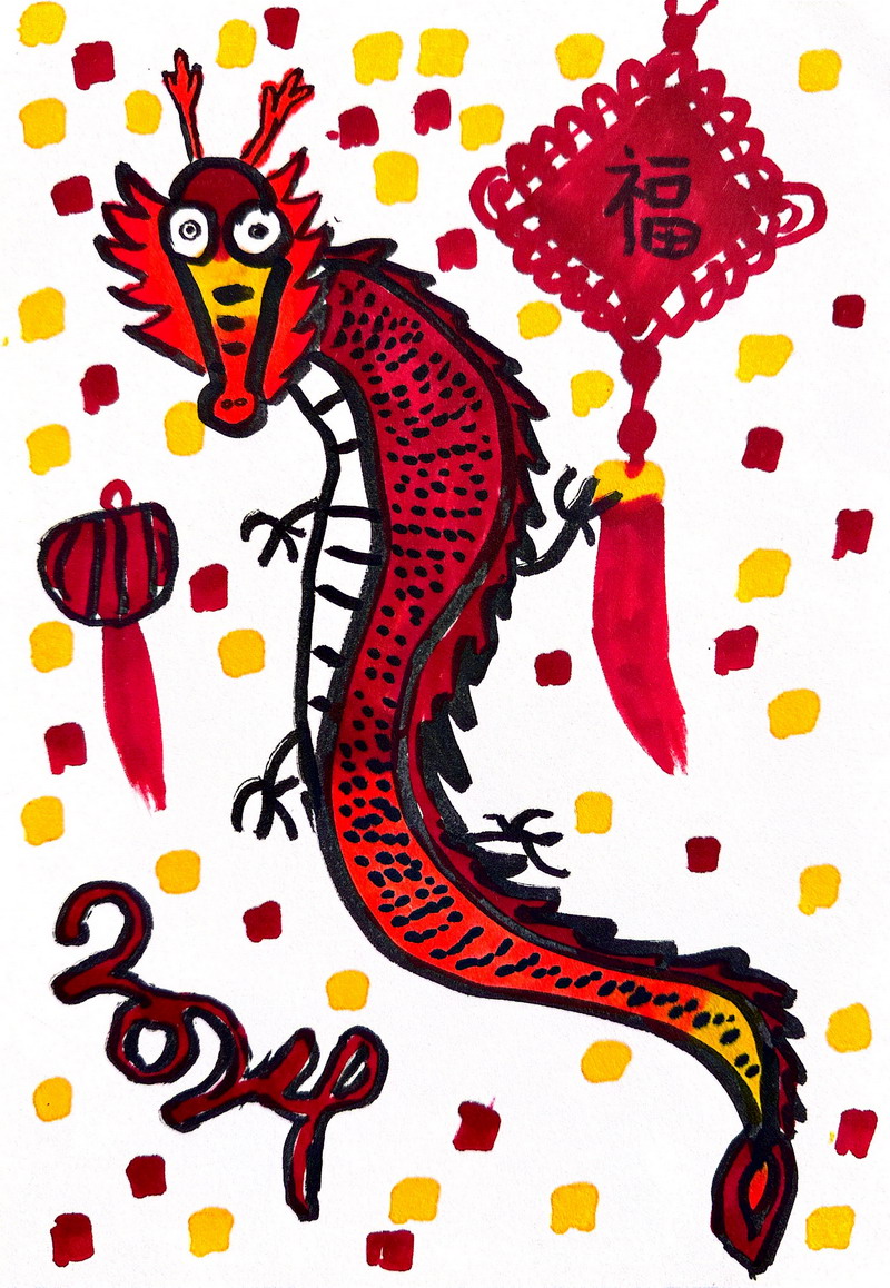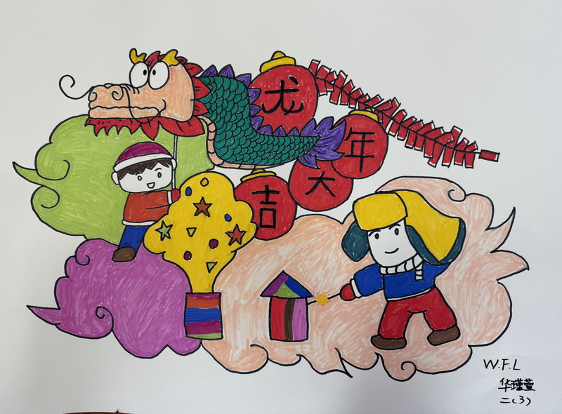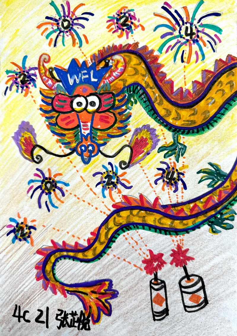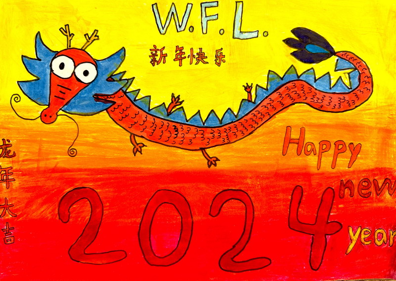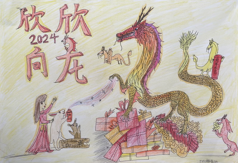 讓我們借孩子們的一幅幅佳作許下龍年的心愿。愿所有的孩子們在未來的道路上,如神龍一般,勇往直前,一飛沖天!祝愿大家在新的一年里龍行龘龘,前程朤朤!