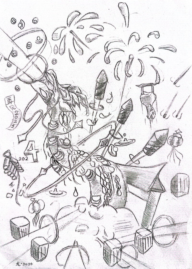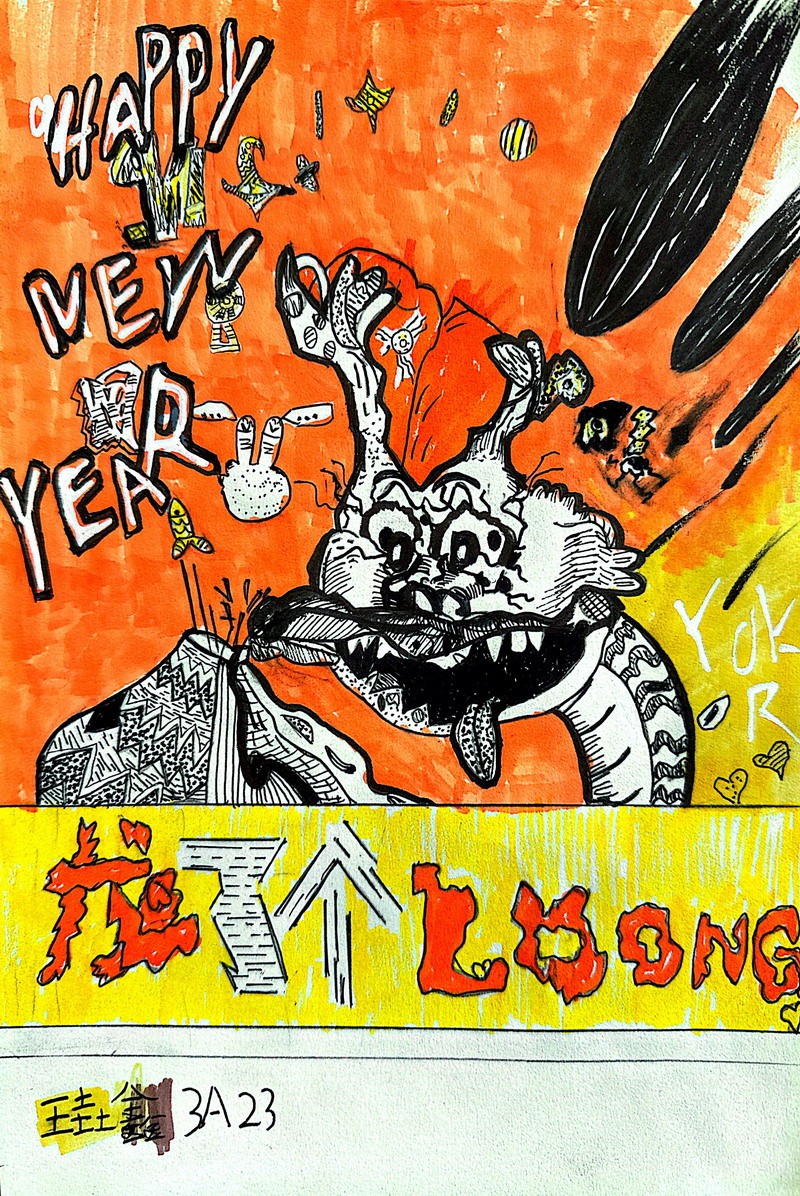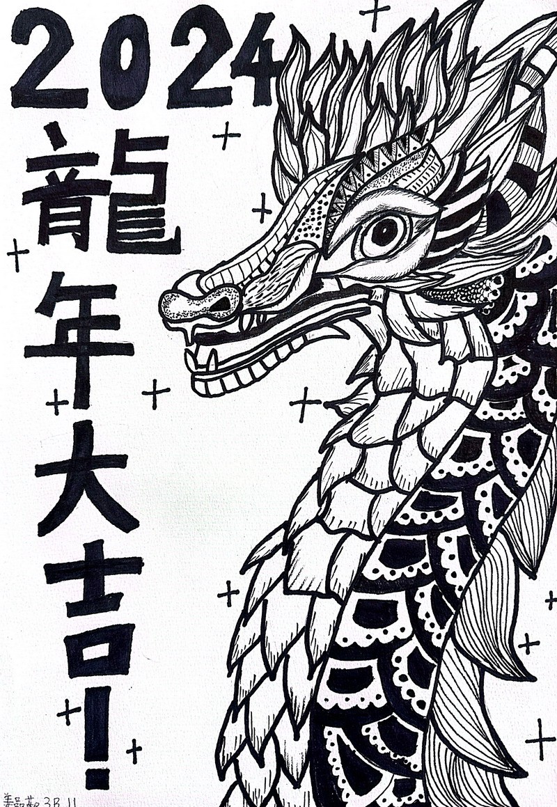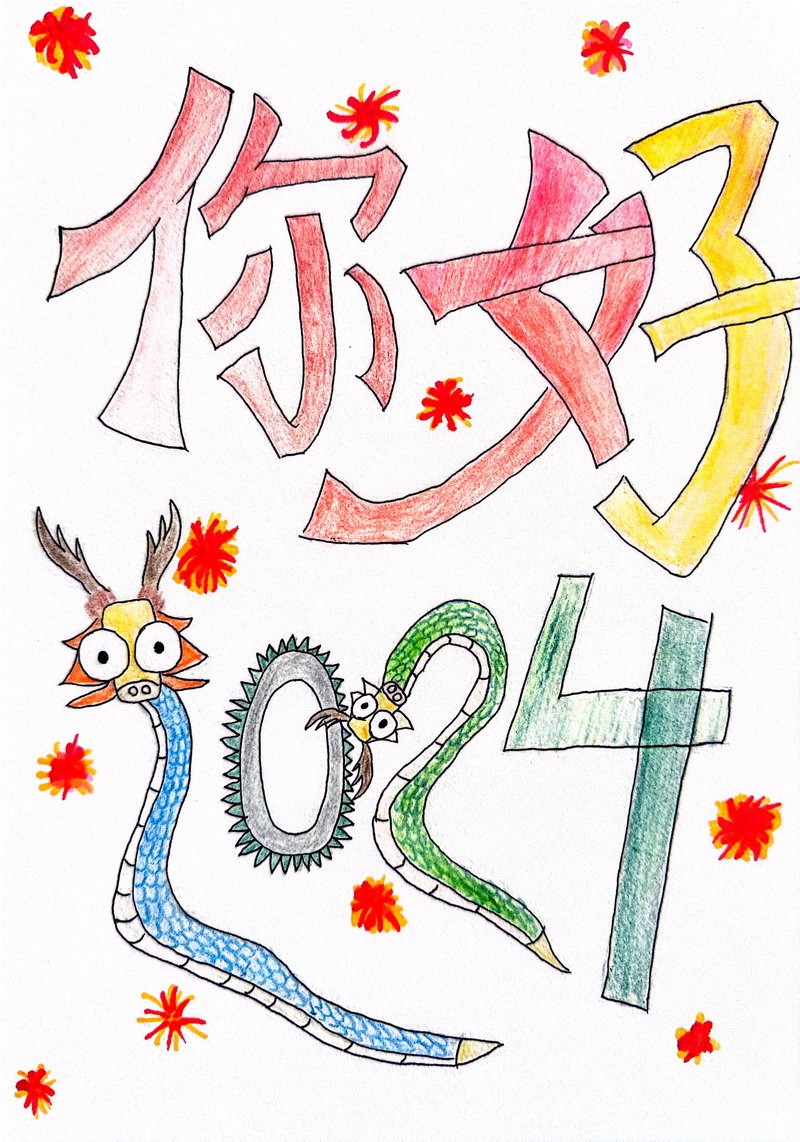 更多的同學以“2024”的字樣為創意來源,融入龍的形象和新年元素,表現節日喜慶氛圍。