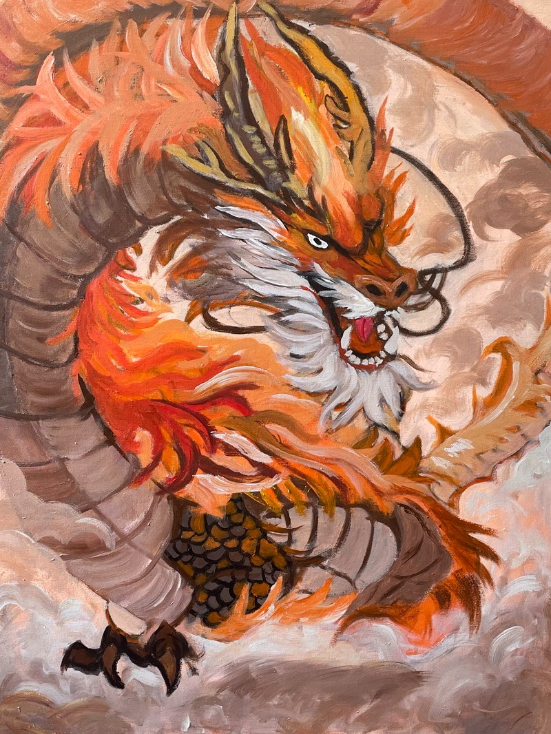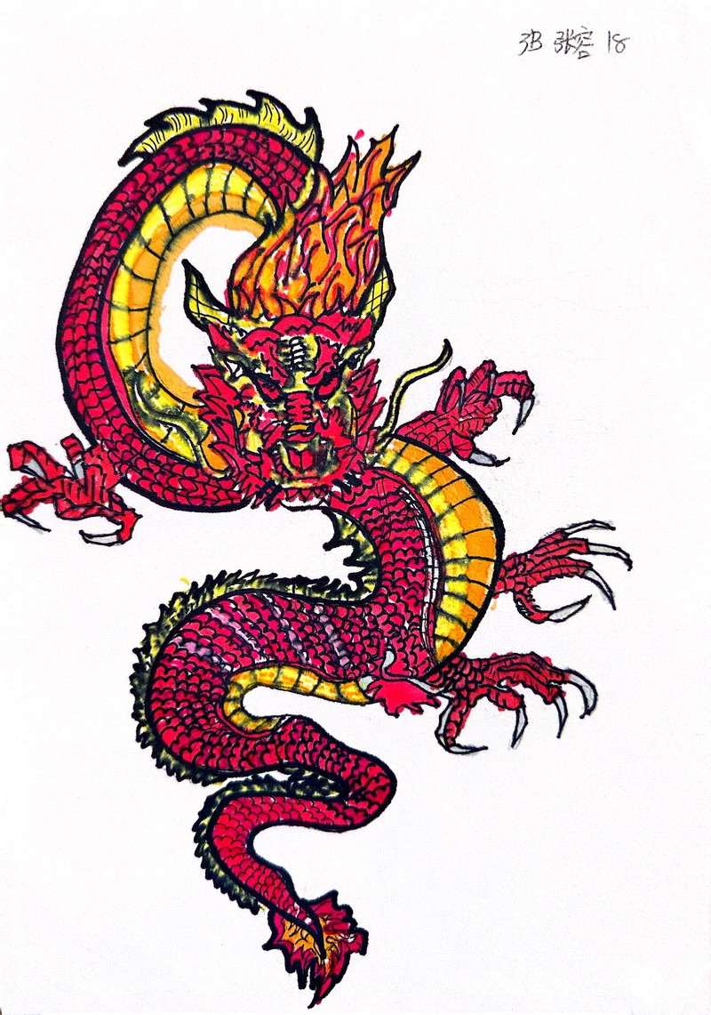 也有同學運用傳統水墨畫技巧,展現了龍的古典美。