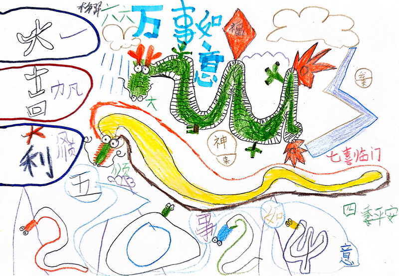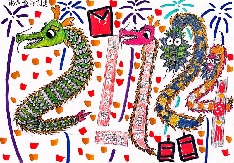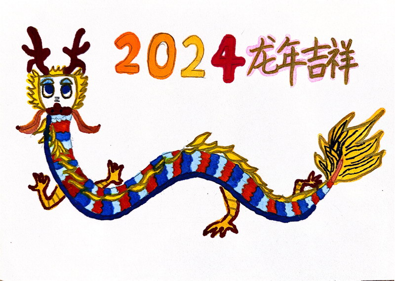 一條條“祝福龍”,寄托了孩子們對龍年的美好希望和祝愿。