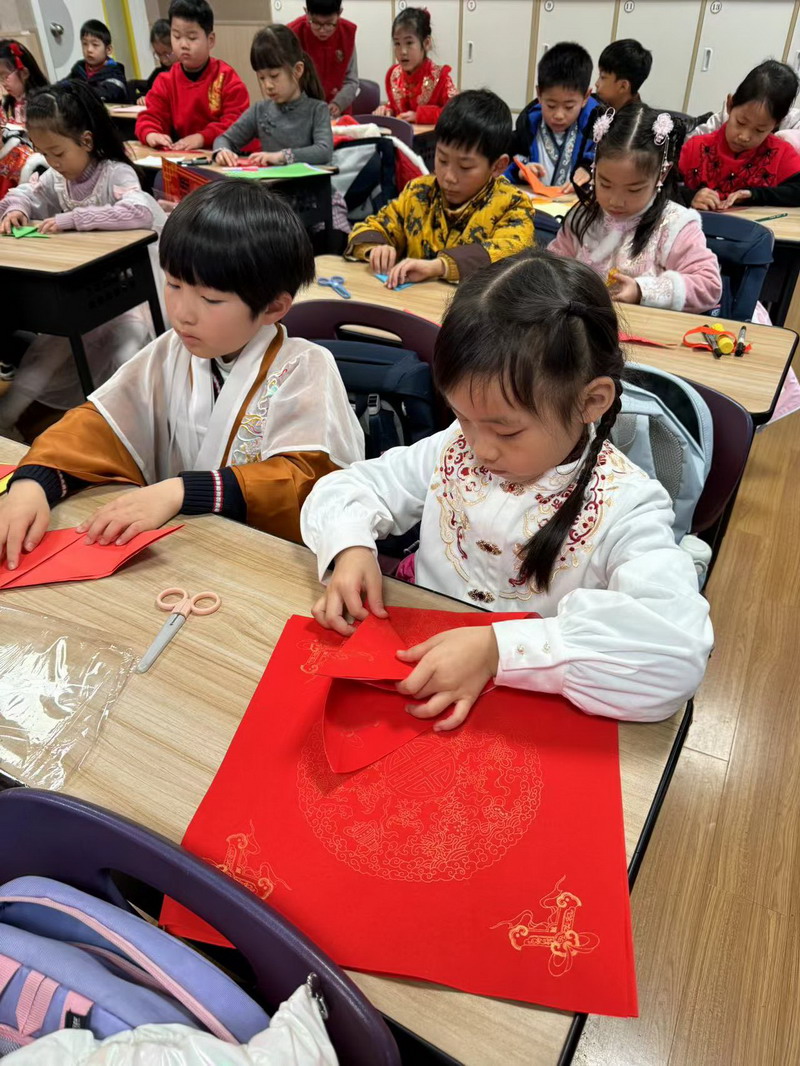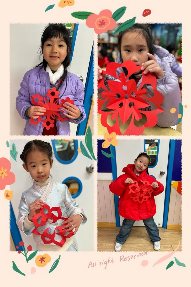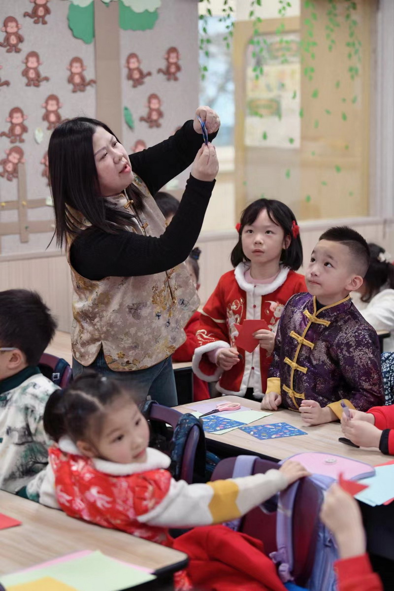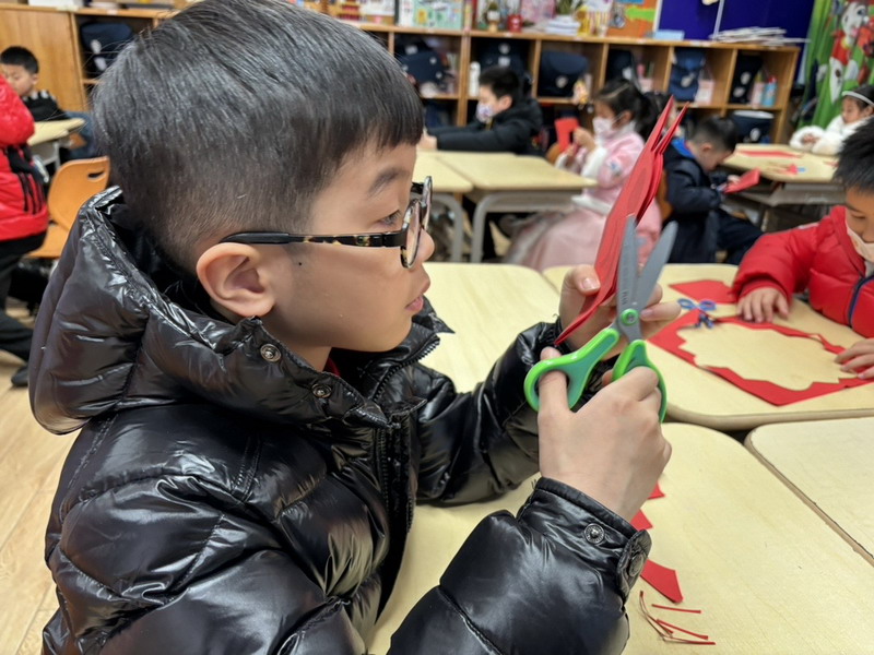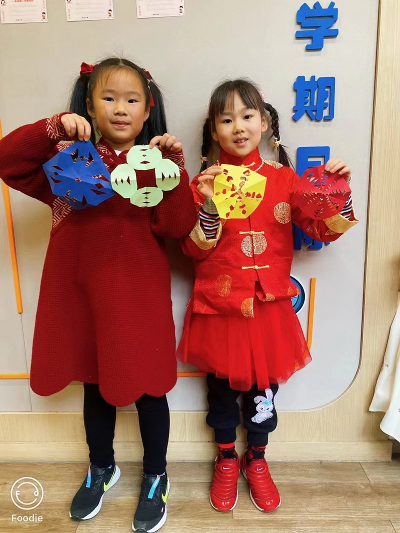 低年齡的孩子們在老師的指導下,撕出了五彩斑斕、形狀各異的窗花。這些窗花被精心布置在教室的外墻上,與孩子們的笑臉相映成趣,為節日增添了無盡的歡樂。