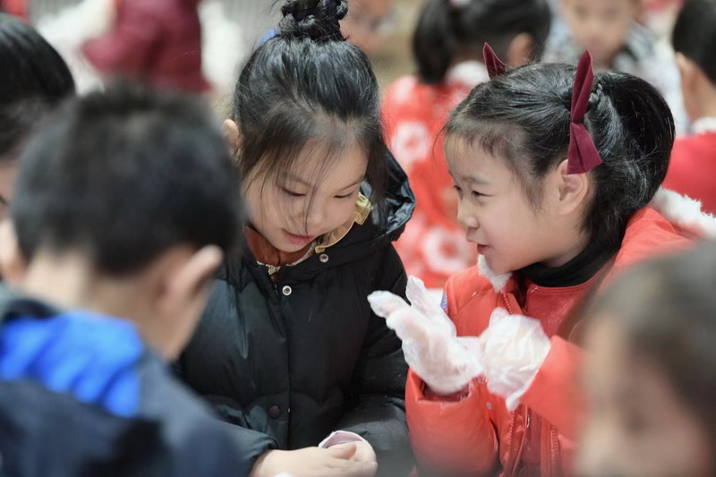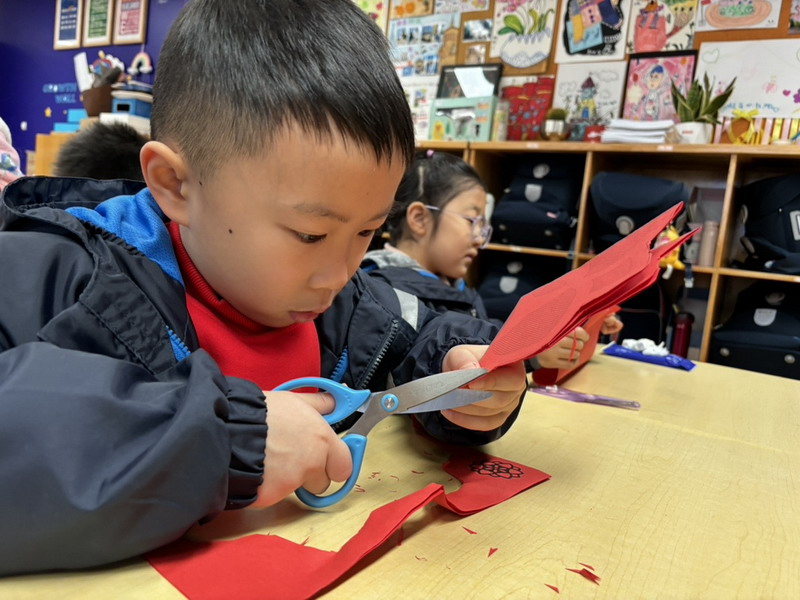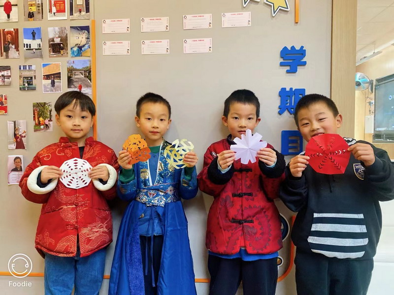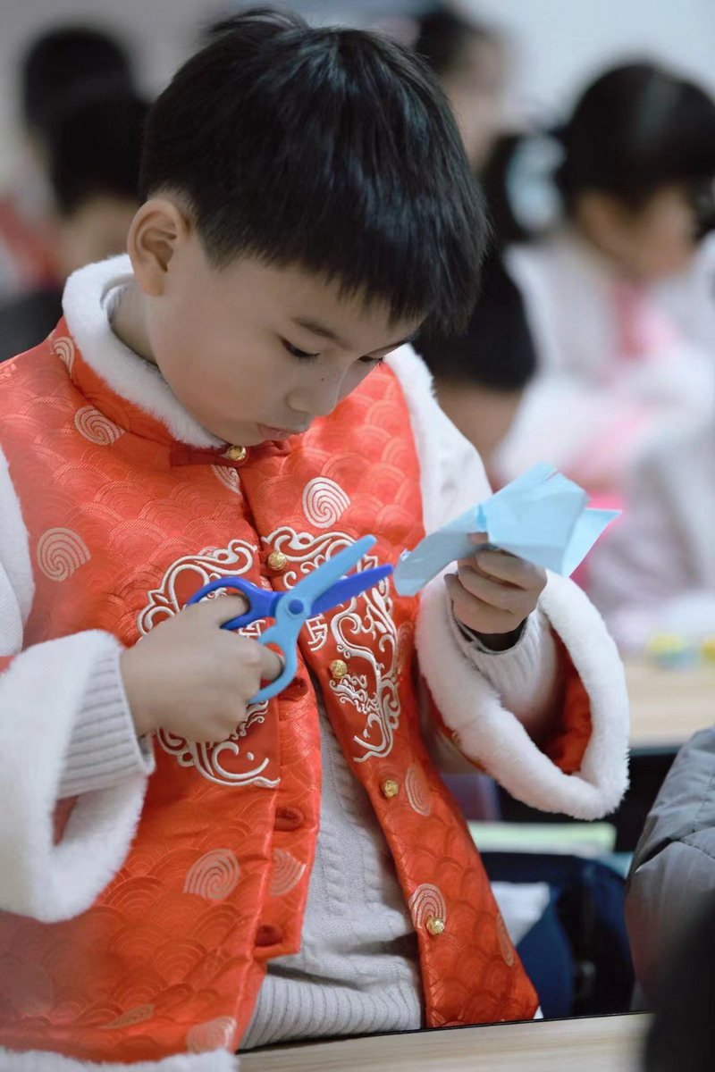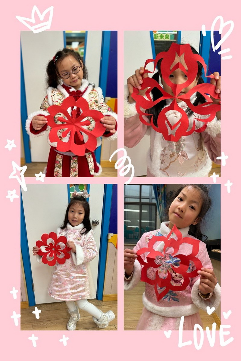 低年齡的孩子們在老師的指導下,撕出了五彩斑斕、形狀各異的窗花。這些窗花被精心布置在教室的外墻上,與孩子們的笑臉相映成趣,為節日增添了無盡的歡樂。