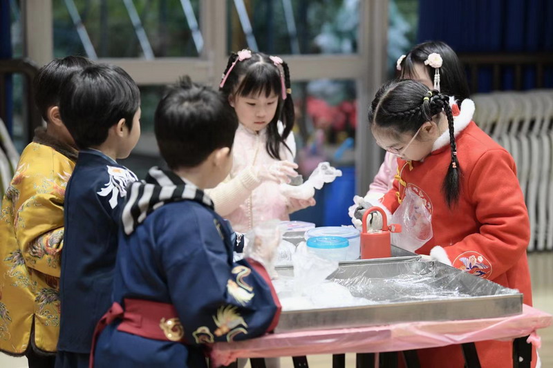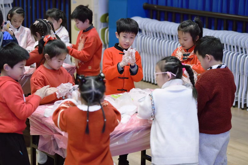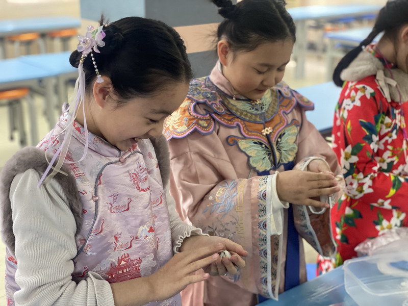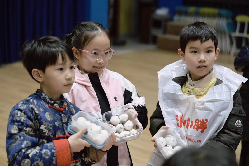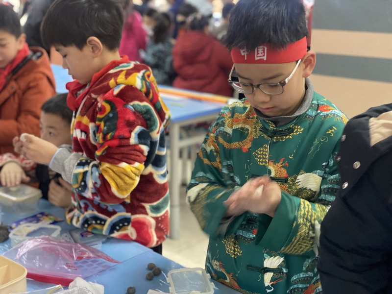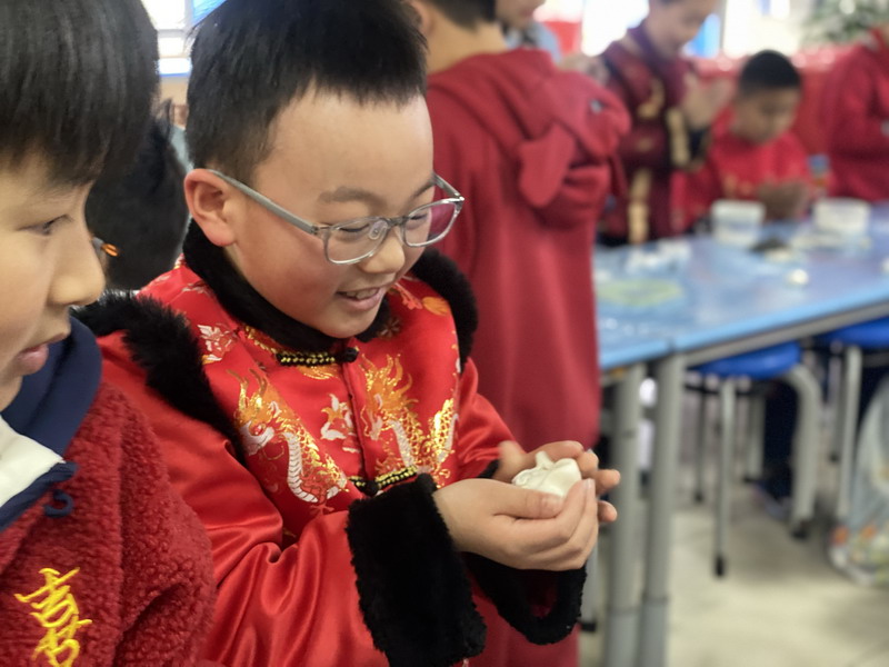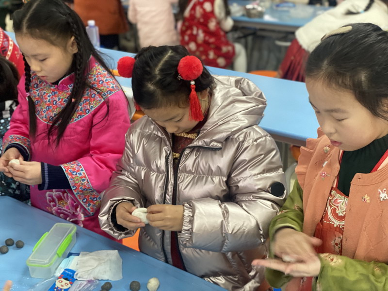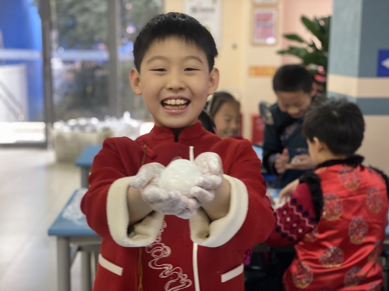 二、三年級的同學們則在體育館忙碌地制作湯圓。和面、包餡、搓圓,每一個步驟都讓孩子們充滿了期待。不一會兒,場館里彌漫著香甜的湯圓味,孩子們將湯圓帶回家煮熟,品嘗著自己親手制作的湯圓,臉上洋溢著滿滿的成就感。